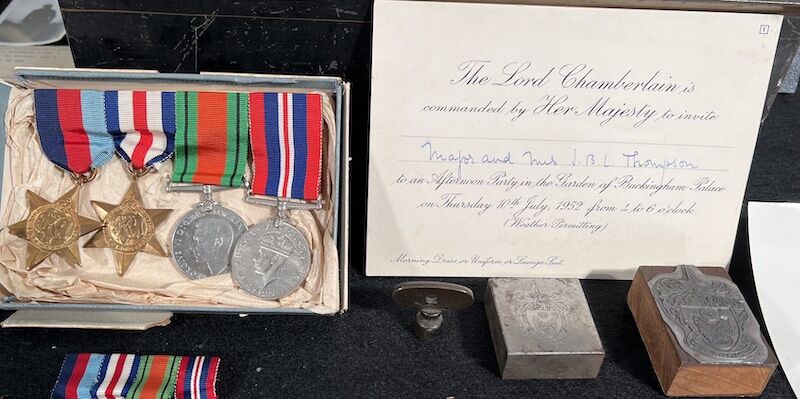 WWI / WWII British Army Officers Medal Grouping – Major J.B.L Thompson – Royal Engineers – Buckingham Palace Invite 1952 – Family Seal