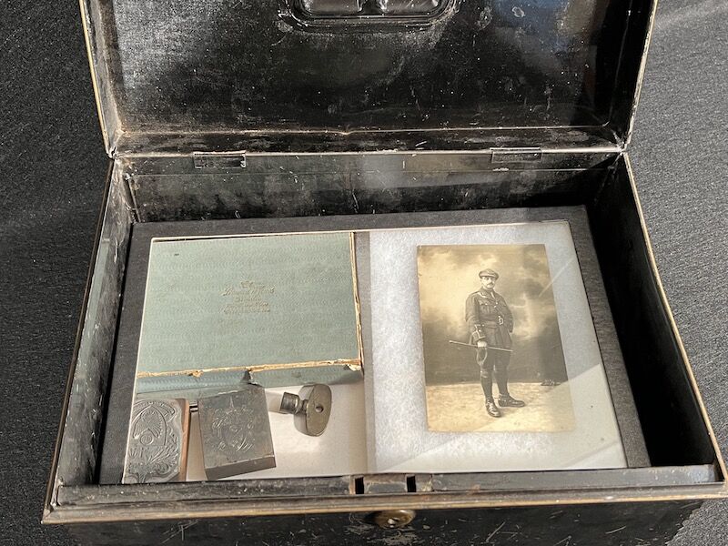This is an interesting little tin of memories, it include fine made silver items. As well as a wonderful pictorial history of the Father and Son during both WWI / WWII.