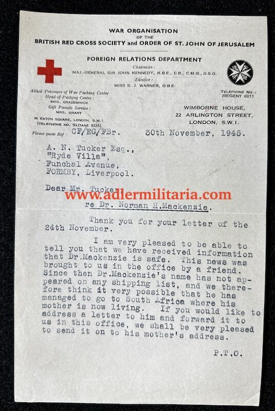 The Red Cross correspondence confirmed he was alive and well, although this makes interesting reading as there are many nuances for Tuckers family in finding their son.