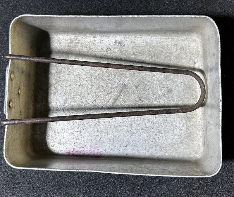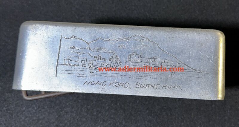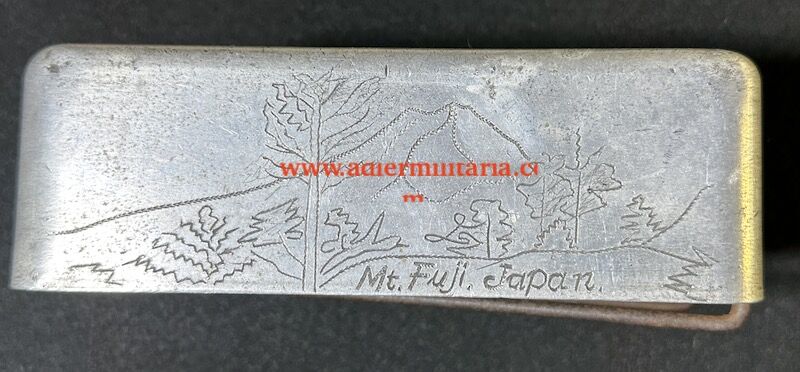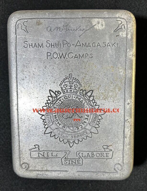 Marked 1939 Broad Arrow British Army Issue Mess Kit – POW Art – From Hong Kong & Mount Fuji Japan – incredibly rare – With AN Tucker and the Royal Army Service Corps Cap Badge neatly detailed on the back of the mess kit.