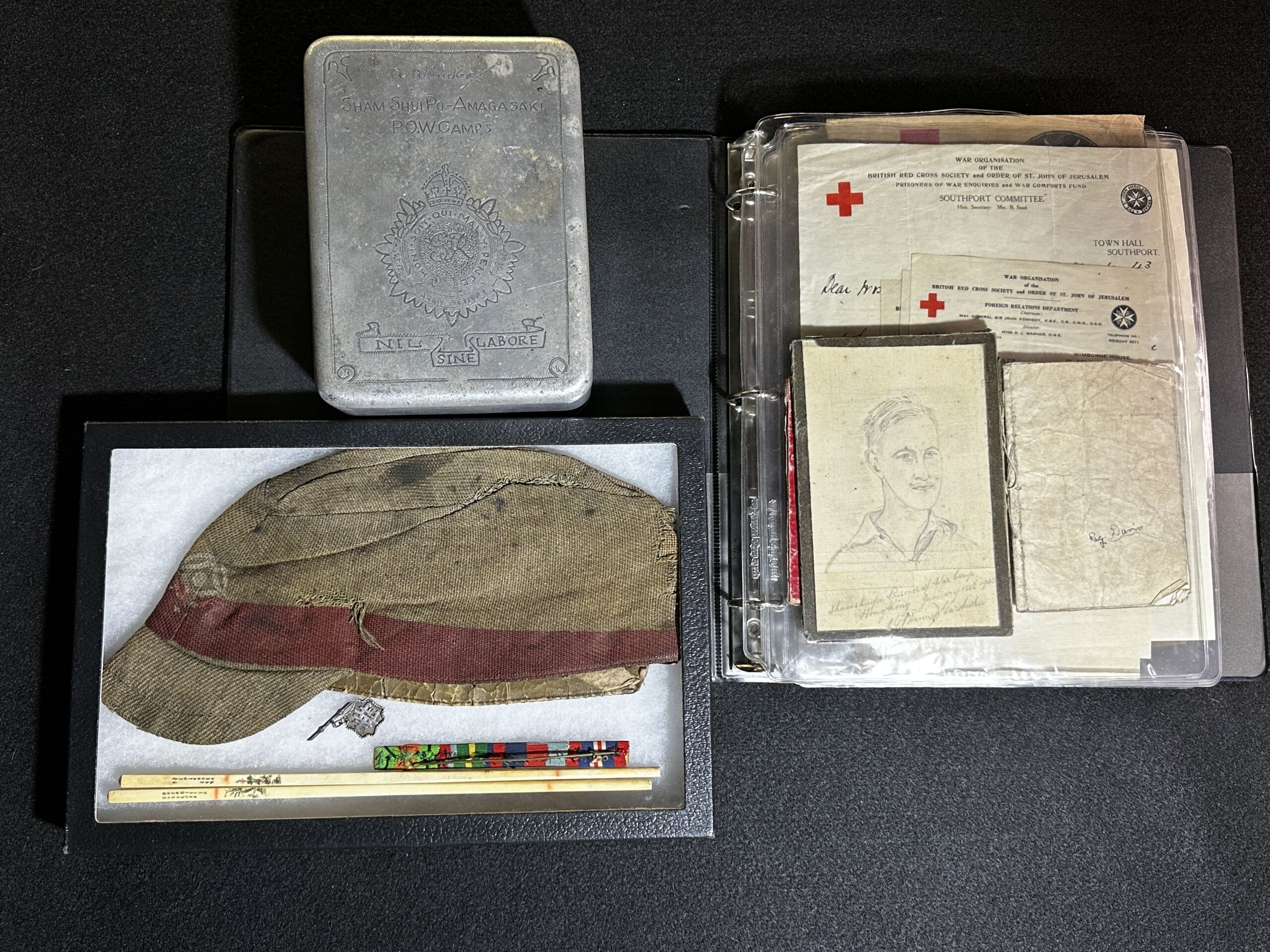 His POW Japanese Issued Cap – , delicate condition but displays well – ncredibly rare item.