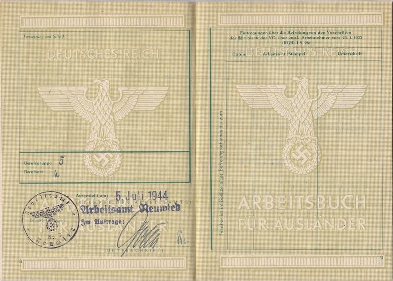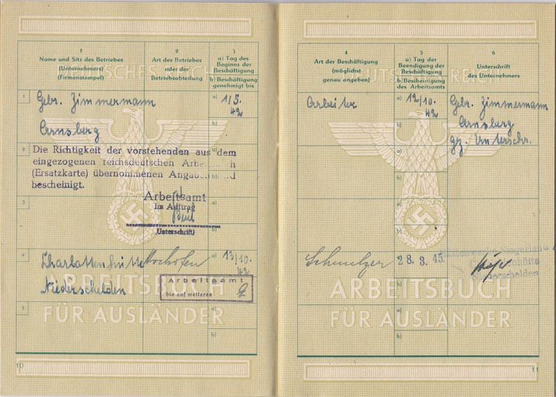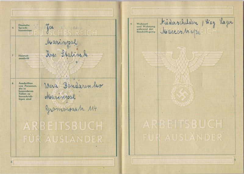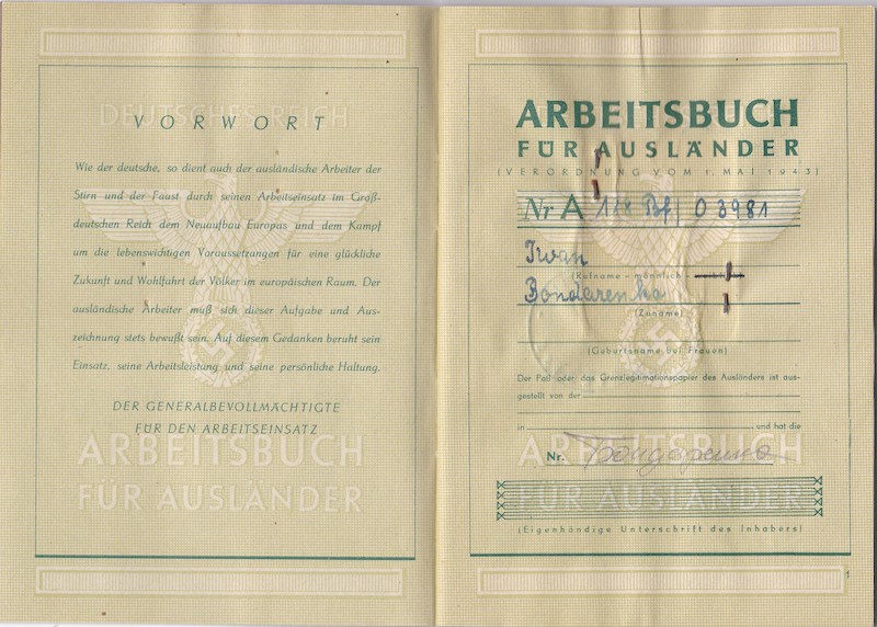 WWII German Arbeitsbuch für Ausländer – Ukrainian Bonderenko