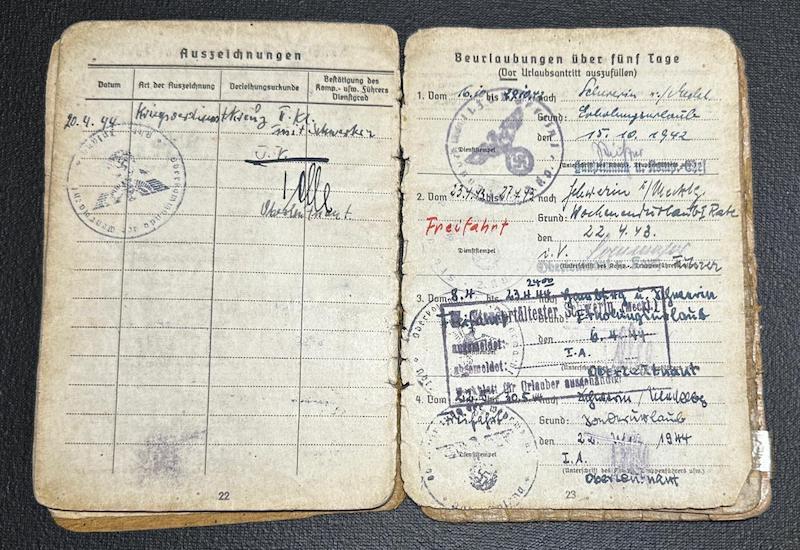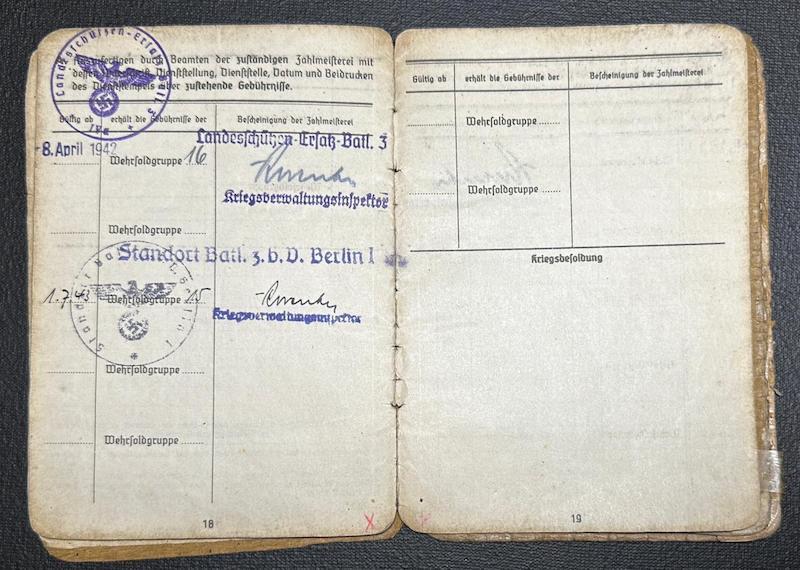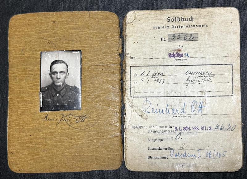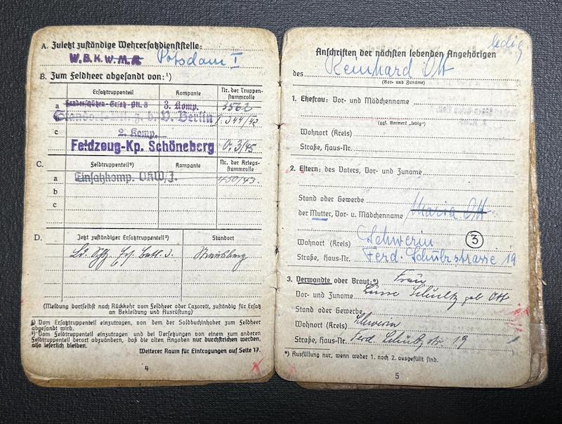 WWII German Army Soldbuch Gefr Ott – Schöneberg Berlin 1945 – OKW – Rare