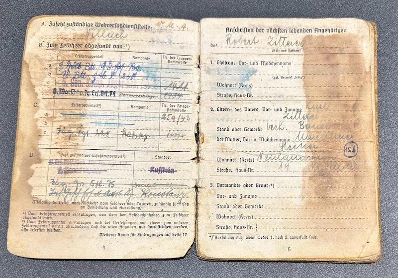 WWII German Army Soldbuch – Gefr Robert Zilterer – Jäger Regiment 228 (101st Jäger Division) – Cross of Iron Movie