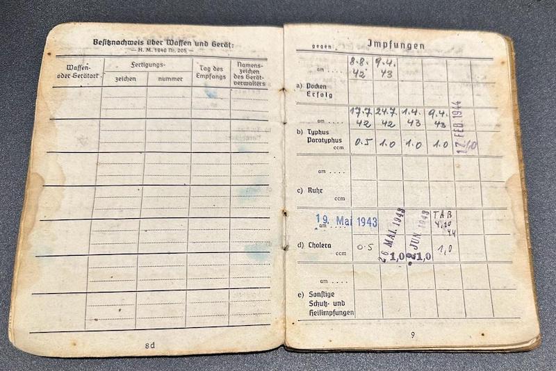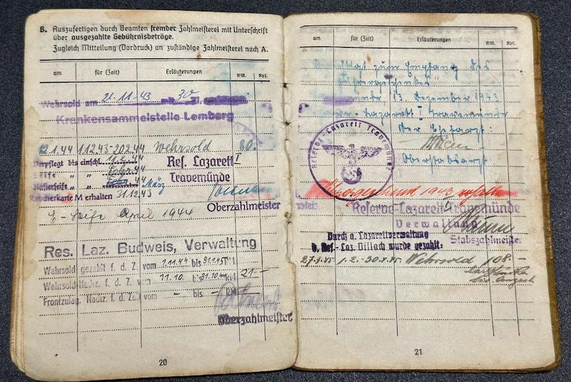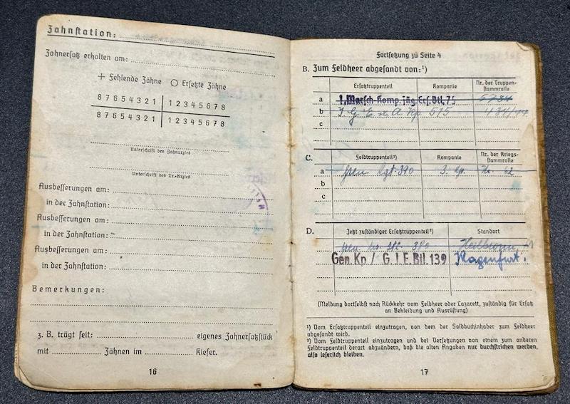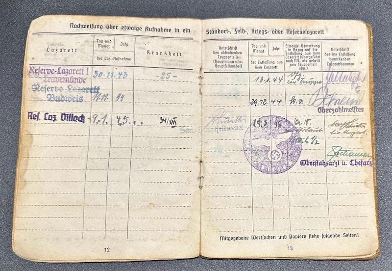 Comments: The Soldbuch seems to be bloodstained, when that happened we will never know. I did try and find him on the Volksbund website as a KIA, but it seems he made it out of the war.