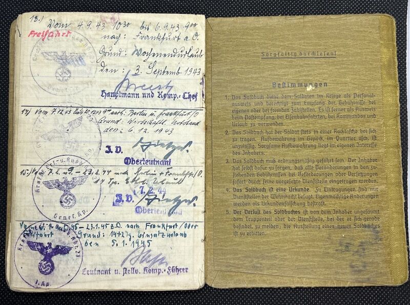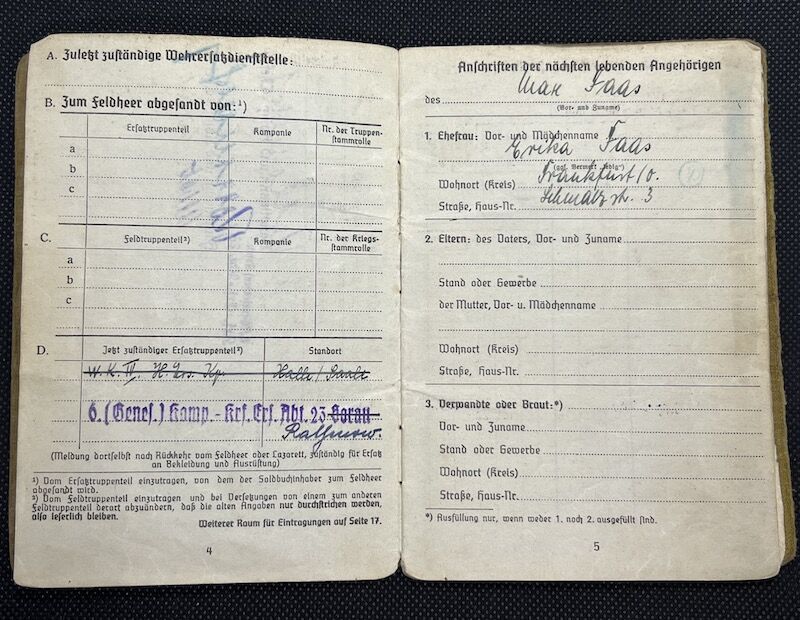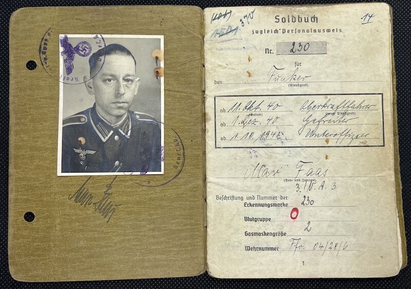 WWII German Army Soldbuch Grouping – Unteroffizier Max Faas – Wounded in the Battle of Berlin – Rathenow Spandau Line – General Holste – 1948 Ostzone KZ NKVD Special Camp – Escaped to West Berlin – Mentioned in Book – Rare Story