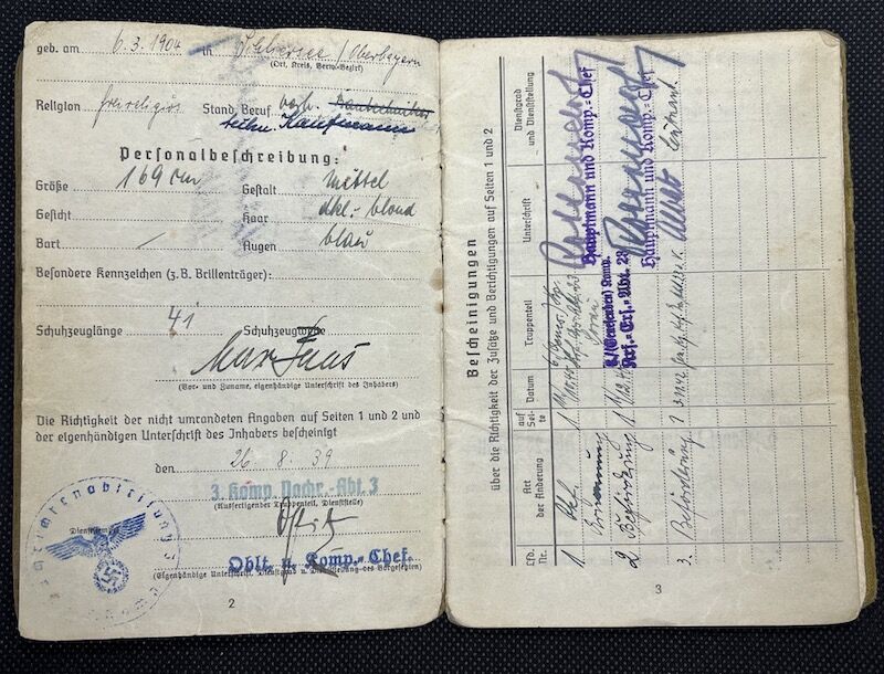 Issued in August 1939 with 3 Kompanie, Nachrichten Abteilung 3.