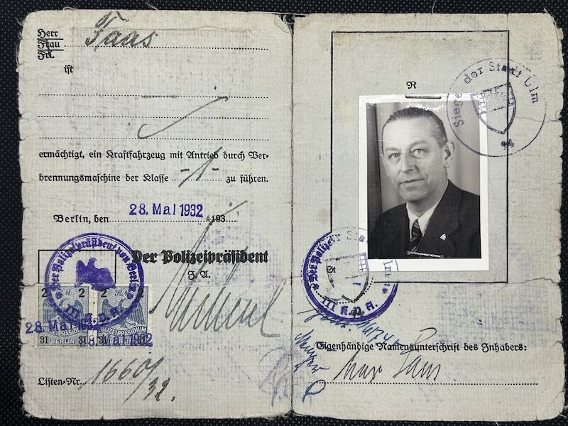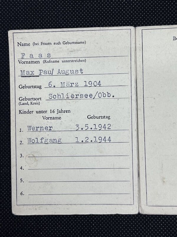 Max Faas passed away in the 1970s, a record exists in the German Archive along with his marriage certificate. His story is quite incredible, what he endured and of course what we will never know. But he was very lucky to survive such a long time in a NKVD Special Camp. Interestingly, you can see how much he has aged in a short time, his Soldbuch picture taken during the war and his picture inside the driving licence was renewed by the City of Ulm after the war. Very rare.