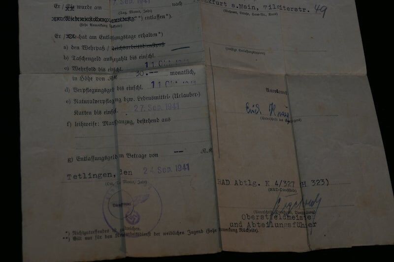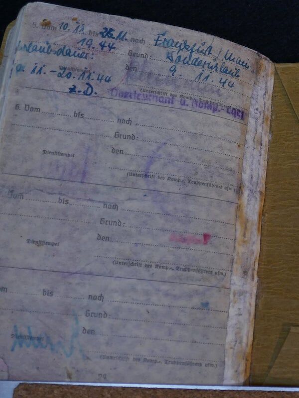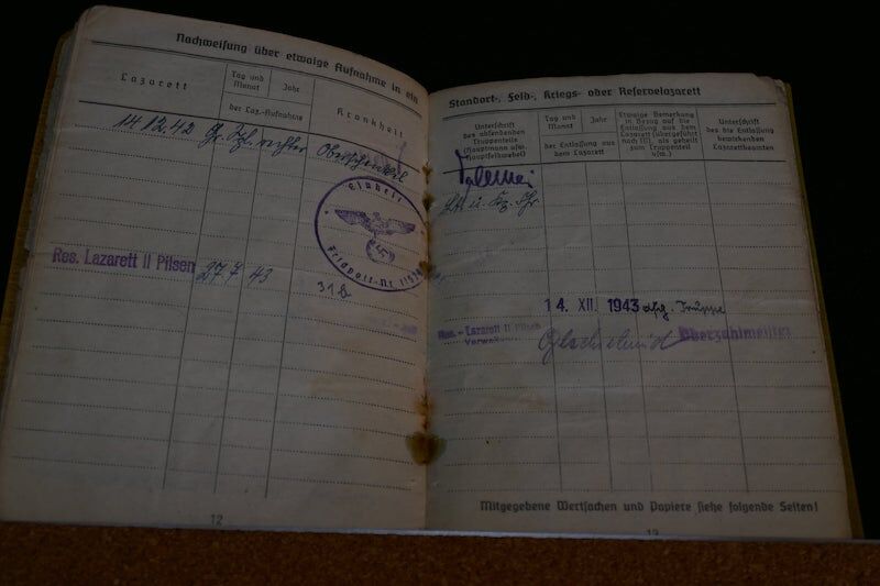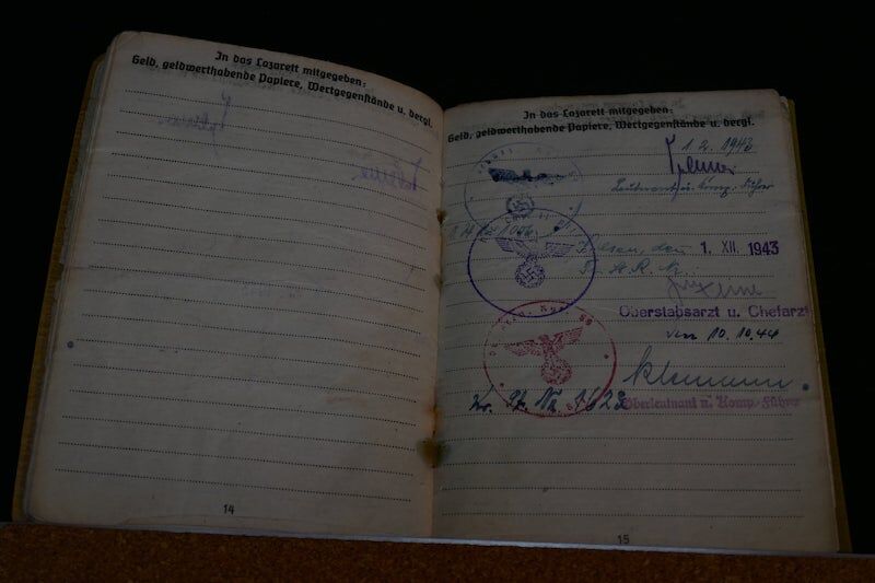 grenade shrapnel, the December 14, 1942; Was admitted to several military hospitals, for a year, (so he could not participate, in the Battle of Kursk). He received a Führerspacket in May 1944. The soldbuch, has a record of 21 days of close combat, dated from December 15, 1942, until January 28, 1945.
