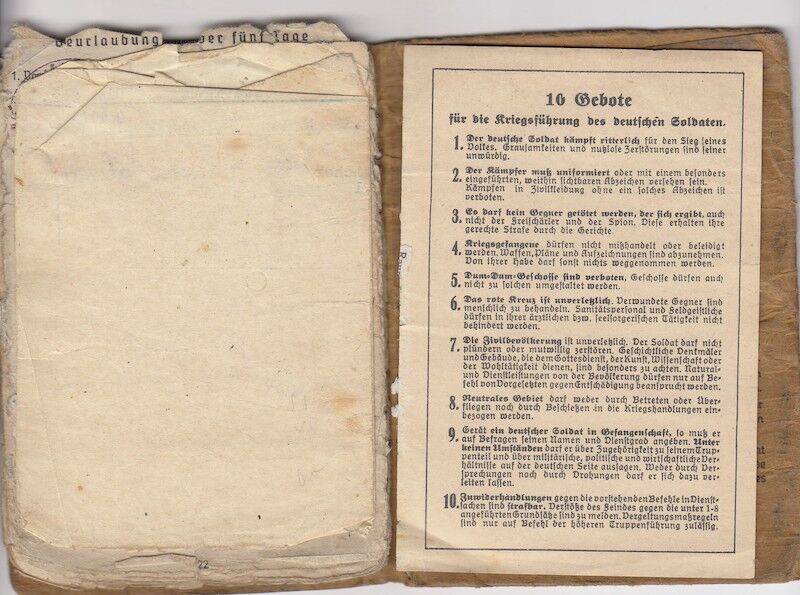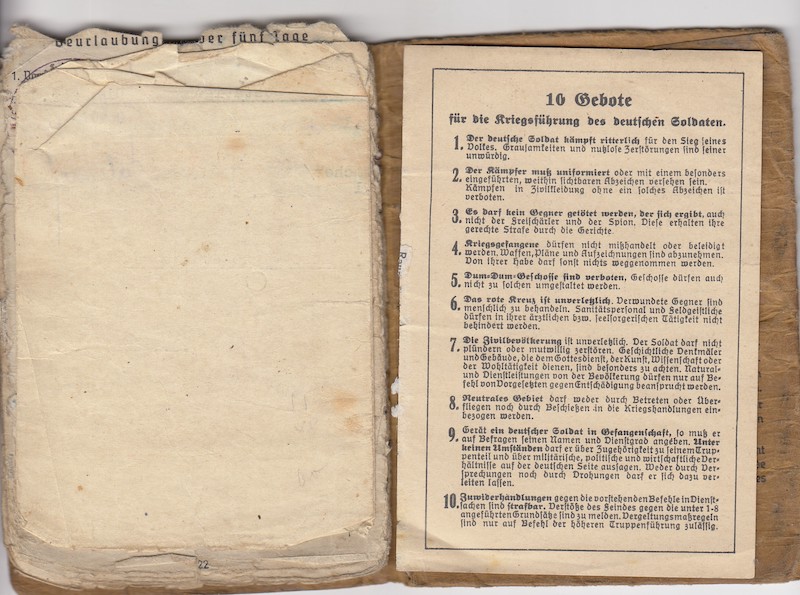 Included in the back of the Soldbuch are the 10 Rules for German Soldiers.