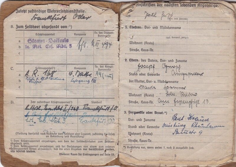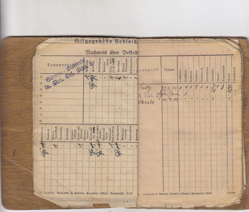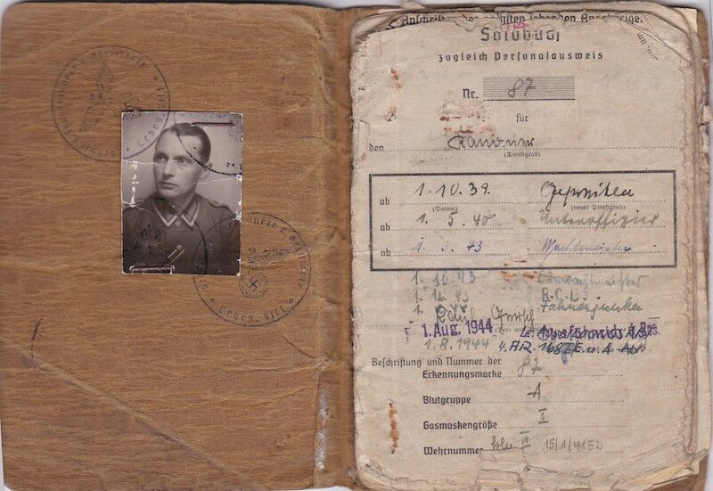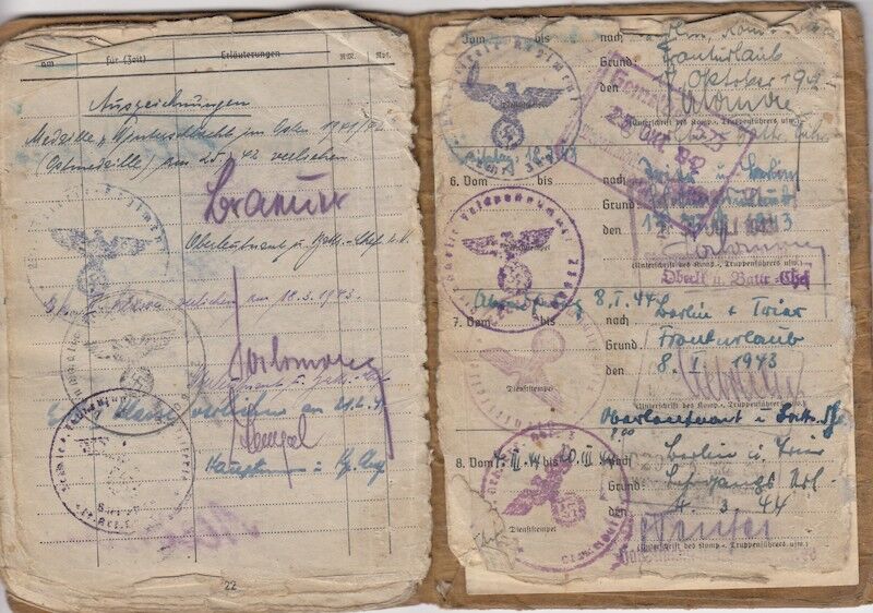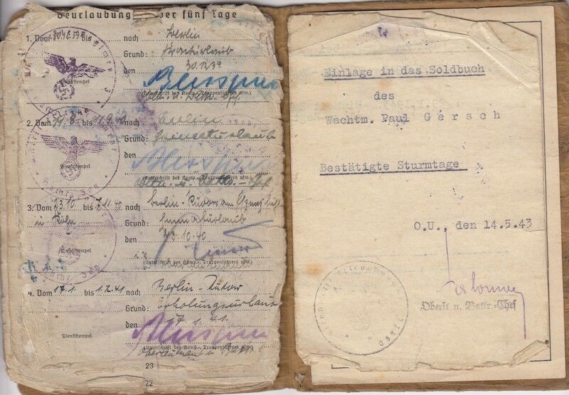 WWII German Army Soldbuch – Wehrmacht Leutnant Gersch – Berliner – Artillerie Regiment 168 – 38 Infanterie Division – Sturmtage – Iron Cross First Class