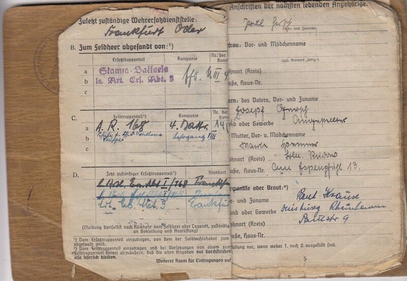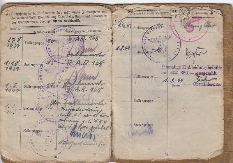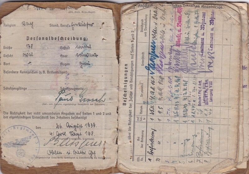 Soldbuch opened in August 1939 with Artillery Regiment 168.