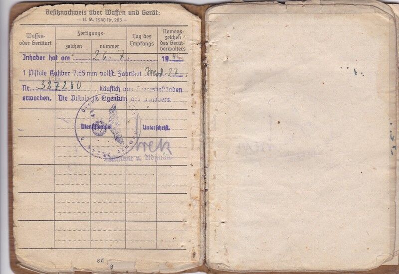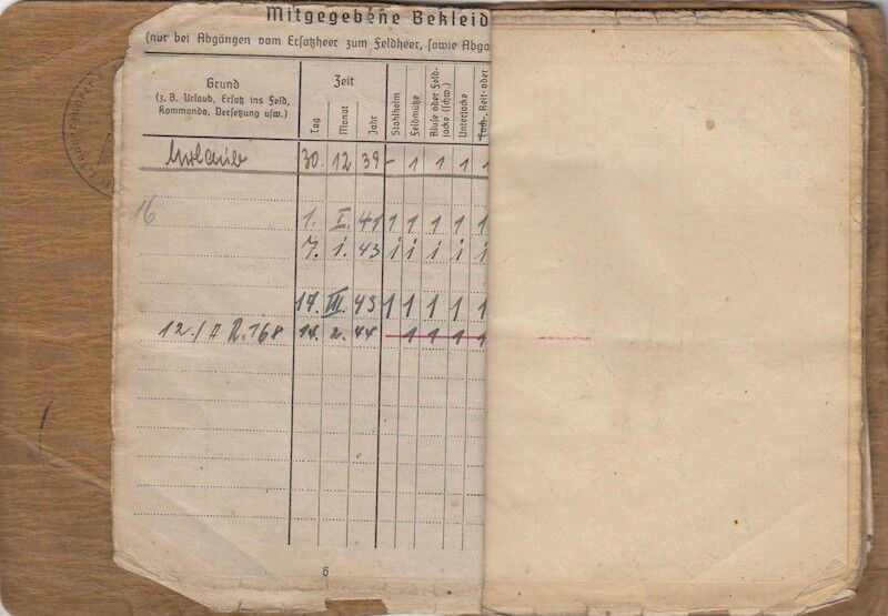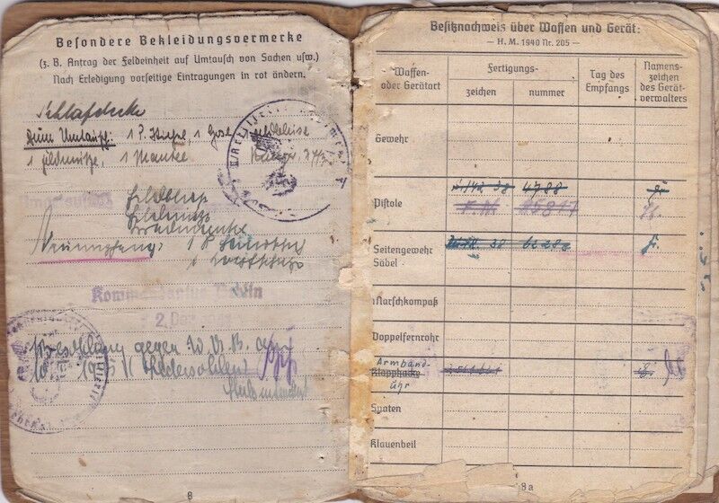 A nice Soldbuch to a real combat Officer. Awarded both classes of the Iron Cross. Interestingly, after his deployment with his Officer rank it seems he once again seen combat, although I am unsure with who. Maybe the School or maybe back to his old unit? Missing one page 13/14