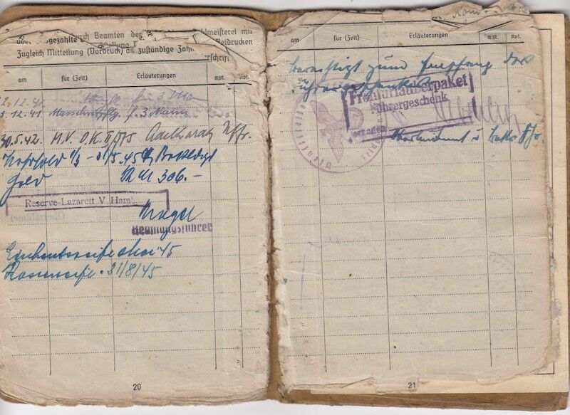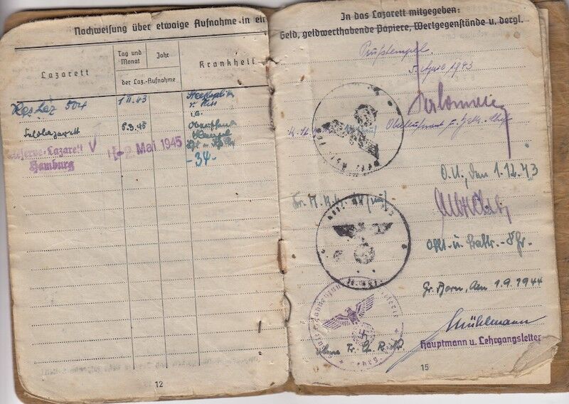 In March of 1945, Gersch was wounded with an infantry bullet (I.G) and in May of 1945 he is back again in hospital in Hamburg due to a code 34: accident of self mutilation. So one thing is clear he certainly seen action after his training.