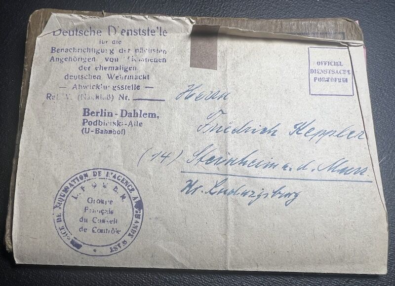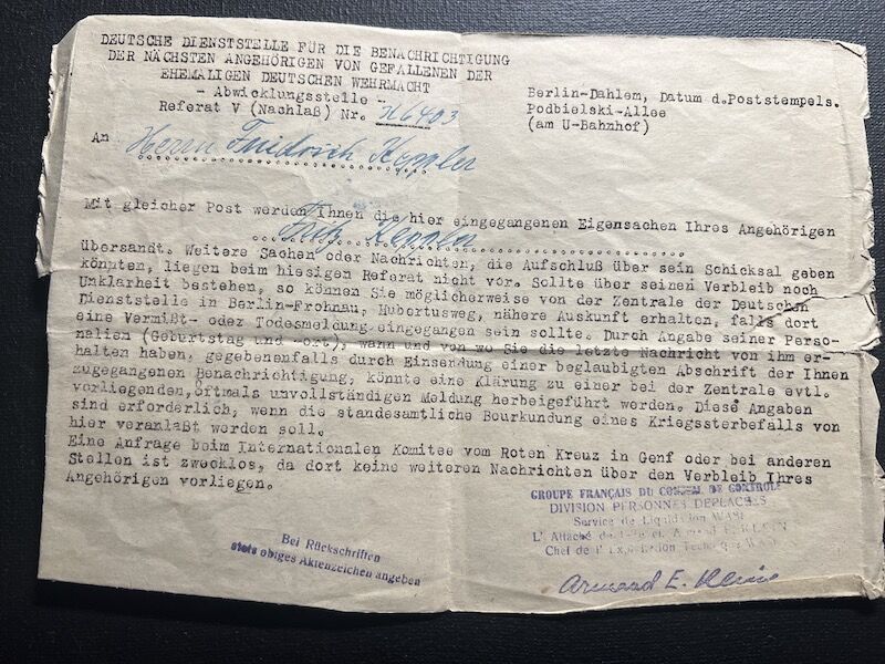 Although with the Grouping is the Letter returning the Soldbuch to father of Keppler from Berlin Dahlem. Stating clearly that they have no further information on the fate of their son.