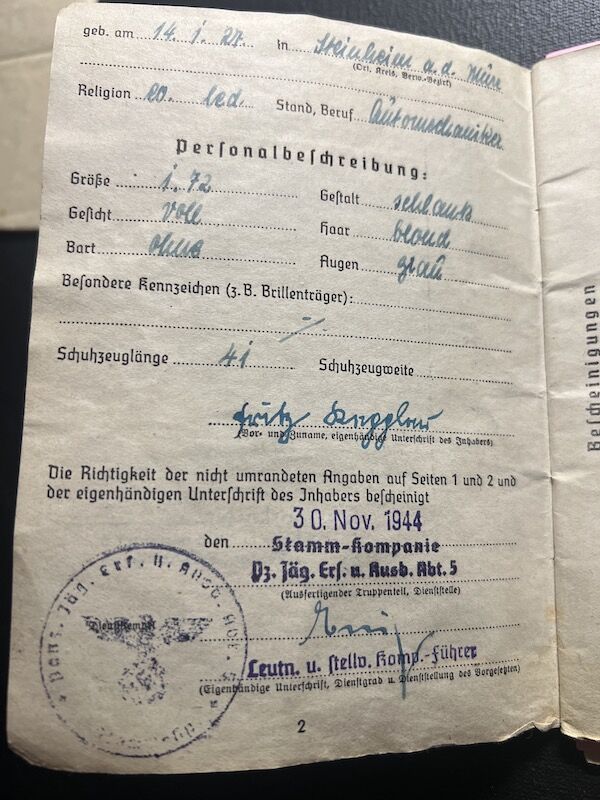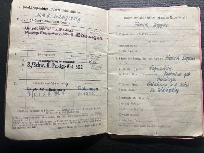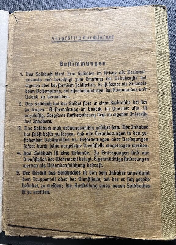 WWII German Army Wehrmacht Soldbuch – Schutze Fritz Keppler – Panzer Division Müncheberg – MIA Battle of Berlin 1945 – Rare