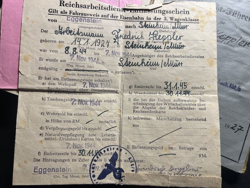 Extras: RAD Paperwork, Wehrmacht Drivers Licence, Delivery Notes with Orders for the 3rd and 1st Company.