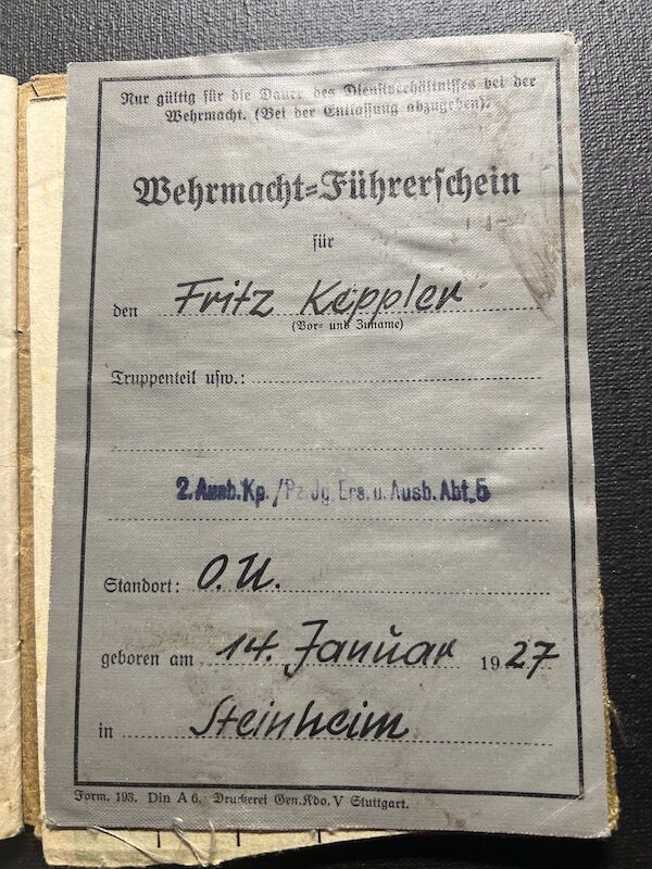 Fredrich Keppler was born in 1927, in Steinheim an der Murr. His civilian job was a Car Mechanic.