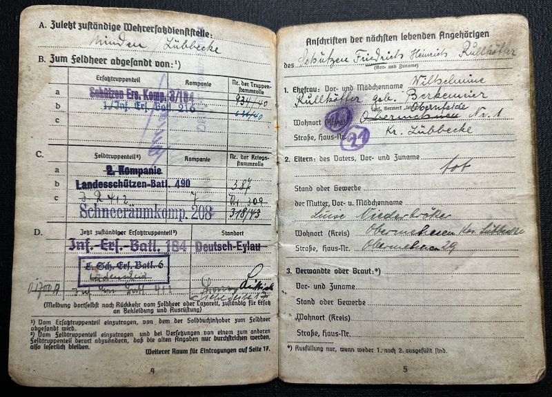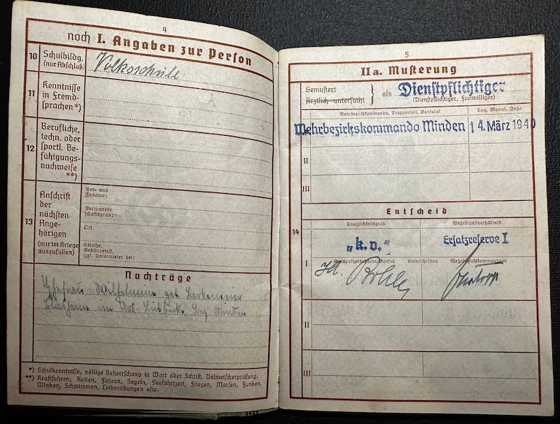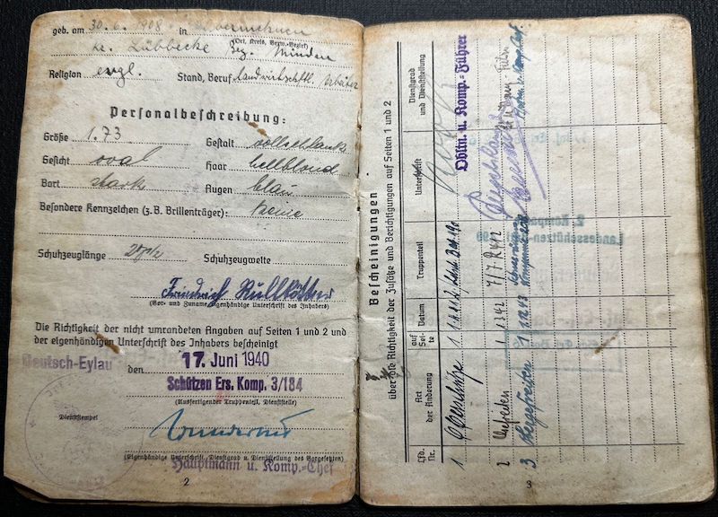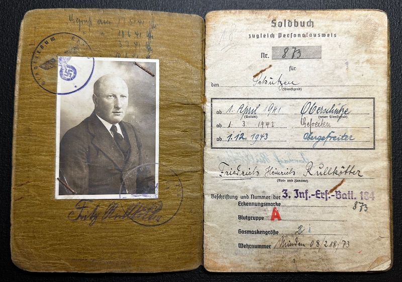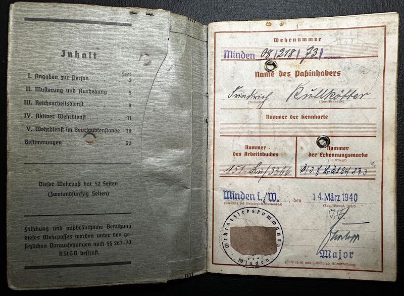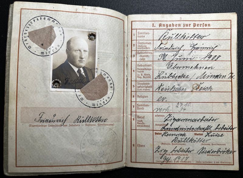 Soldbuch & Wehrpass for Friederich Rullkötter, born in 1908 in the area of Minden.