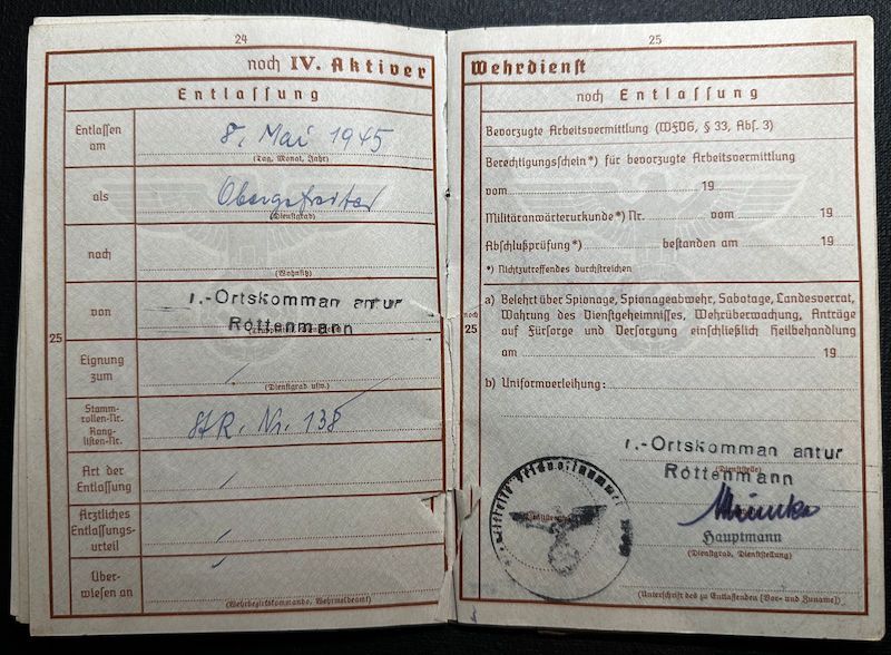 He made it to the end of the war and was released from service on the 8th of May 1945.