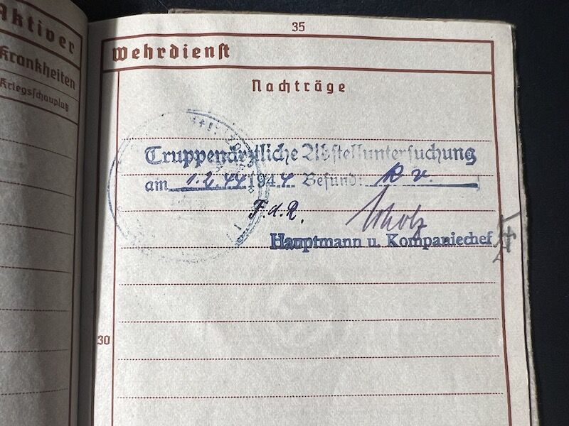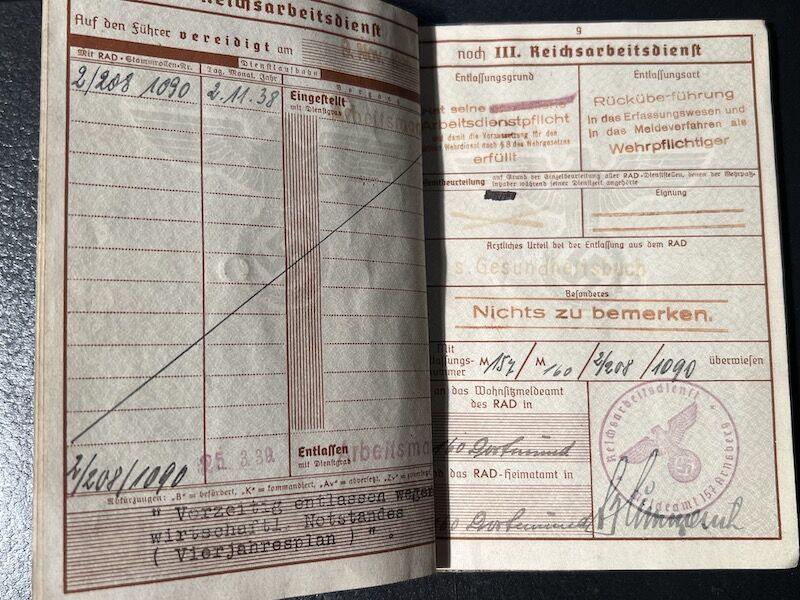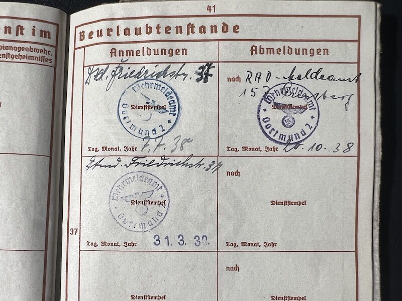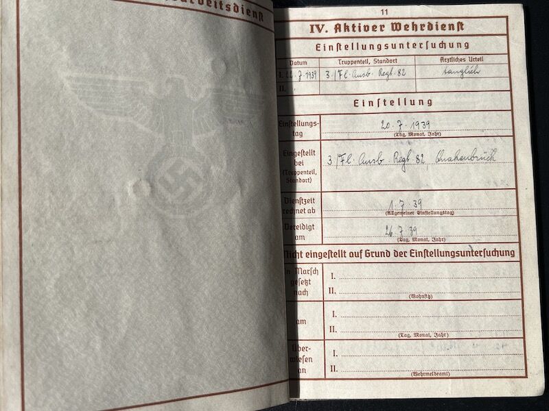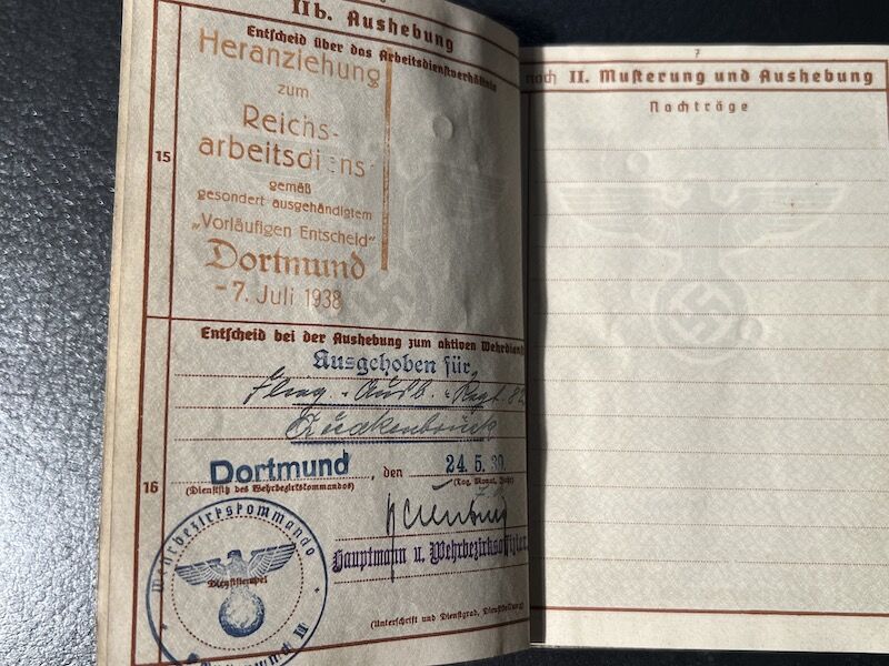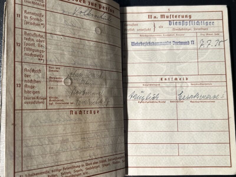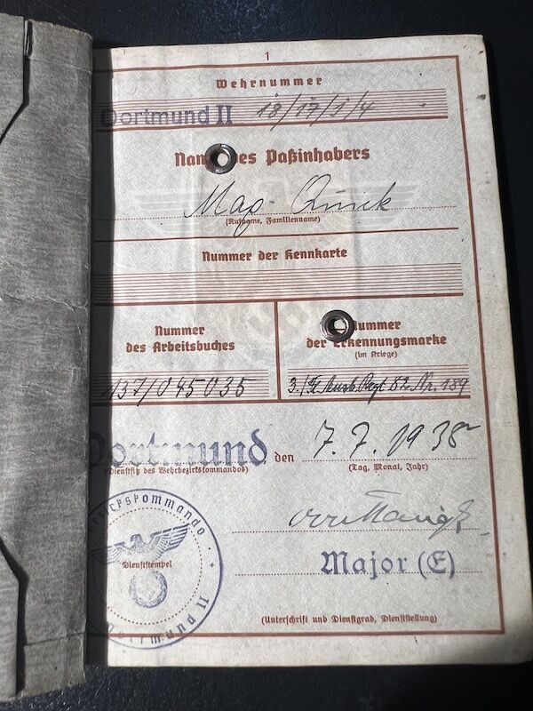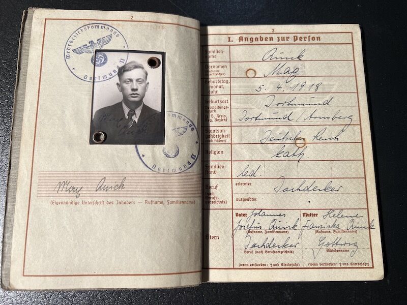 Wehrpass issued to Max Quick, born in Dortmund Germany in 1918.