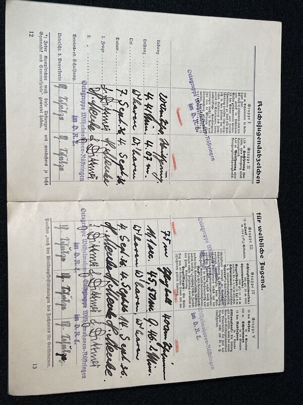 WWII German BDM League of German Girls – RLA Reich Youth Sports Badge – Leistungsbuch – Original