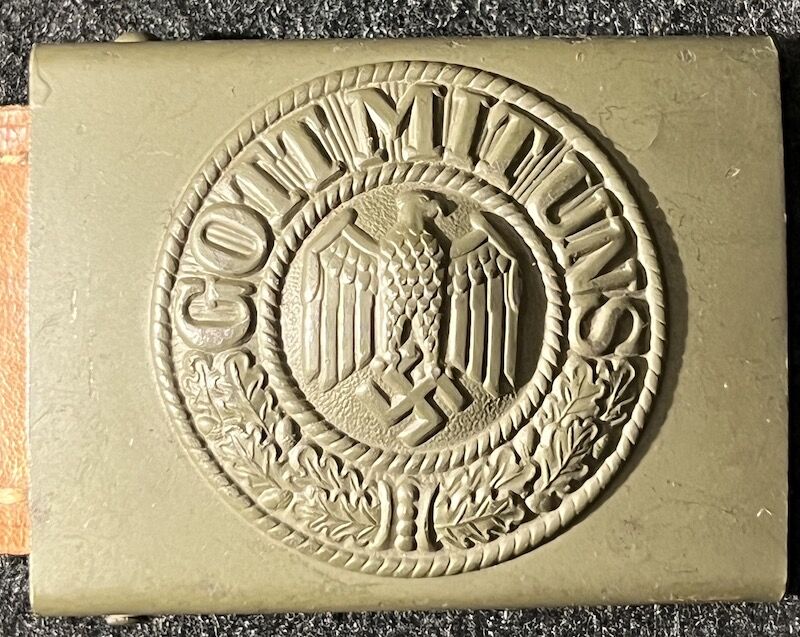 1941 Heer steel belt buckle retaining over 95% of the green factory paint.