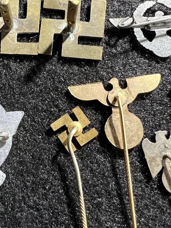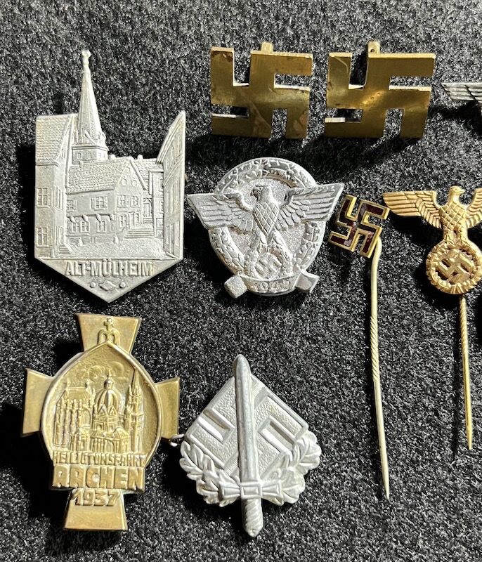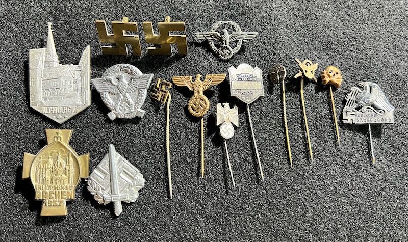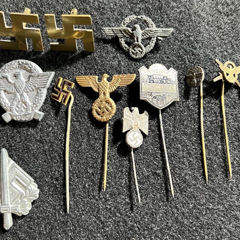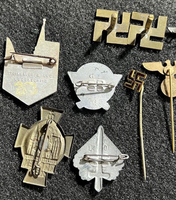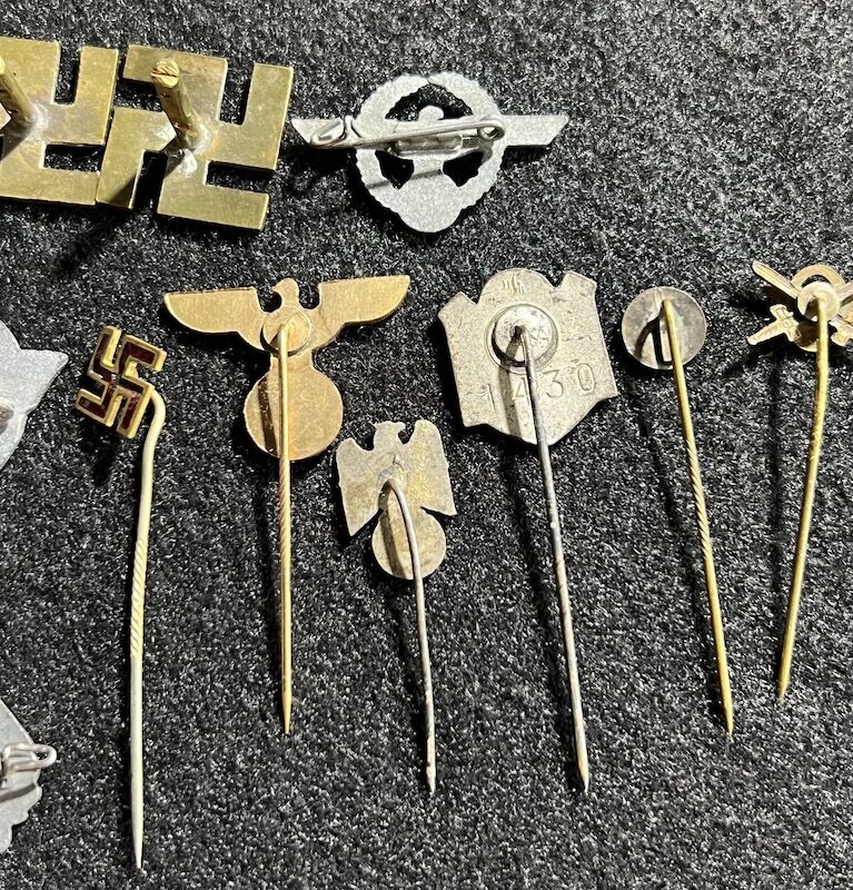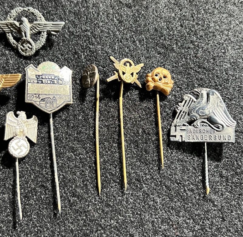 WWII German Civilian Sympathy Items – Stick Pins – Day Badge – Nazi Cuff Links – Totenkopf Stick Pin – NSDAP Stick Pin