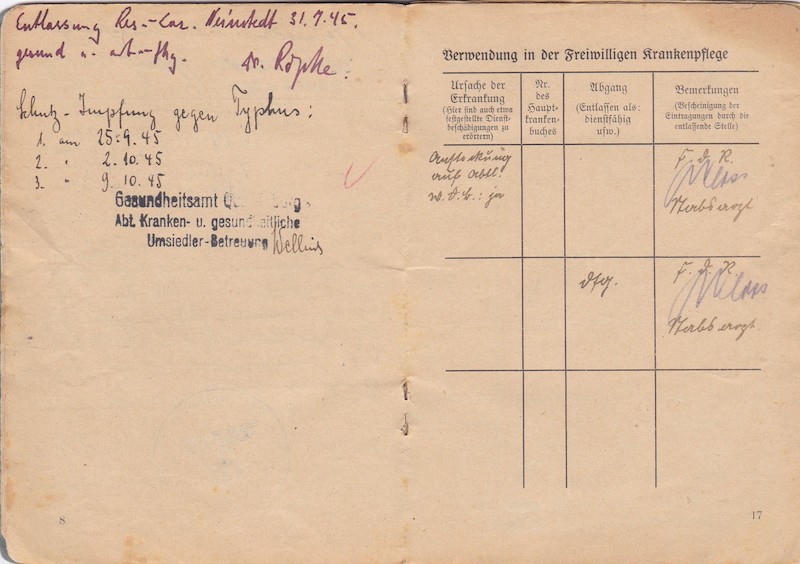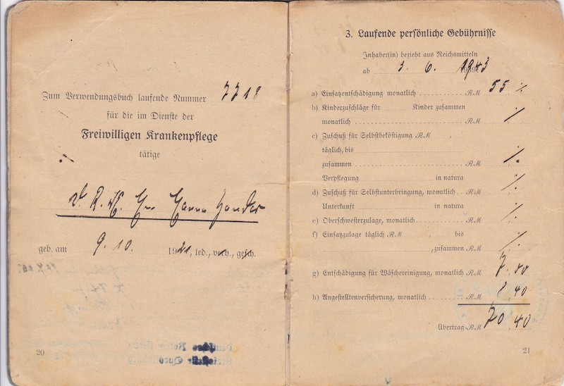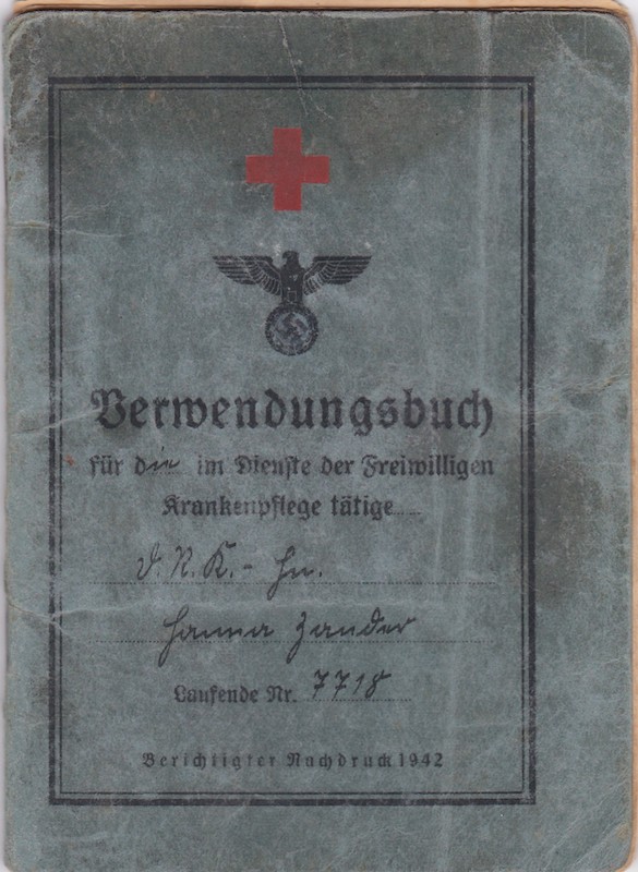 WWII German DRK Verwendungsbuch & Erkennungsmarke – DRK Nurse Hanna Zander – Tag – Freiwillige Krankenpflege Wehrkreis XI