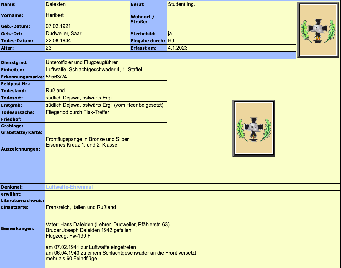 Pilot Uffz Daleiden, Heribert, +