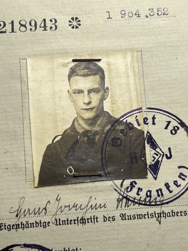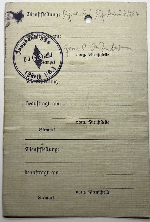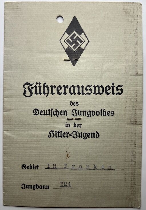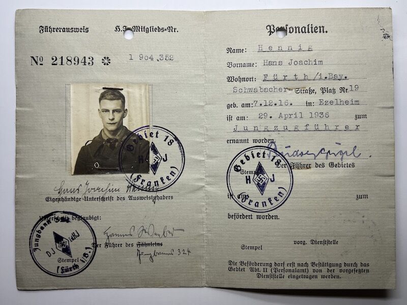 WWII German Hitler Youth – Hitlerjugend Führerausweis 1936- Leaders Identity Papers – Jungzugführer Hans Joachim Hennig – Gebiet 18/Franken Fürth-