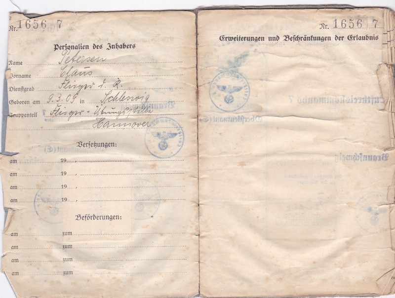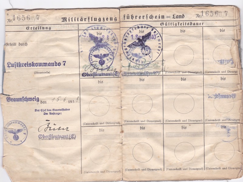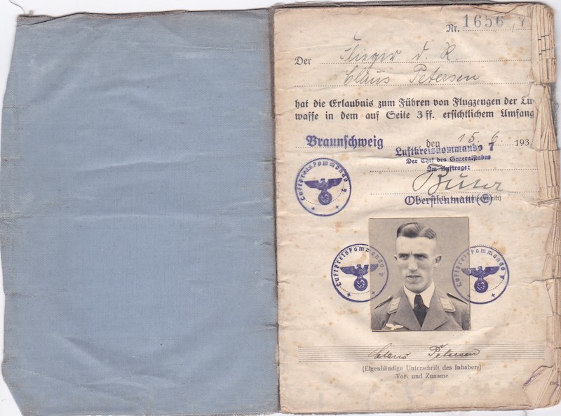 WWII German Luftwaffe Flugzeugführerschein – Claus Petersen – Flying Licence