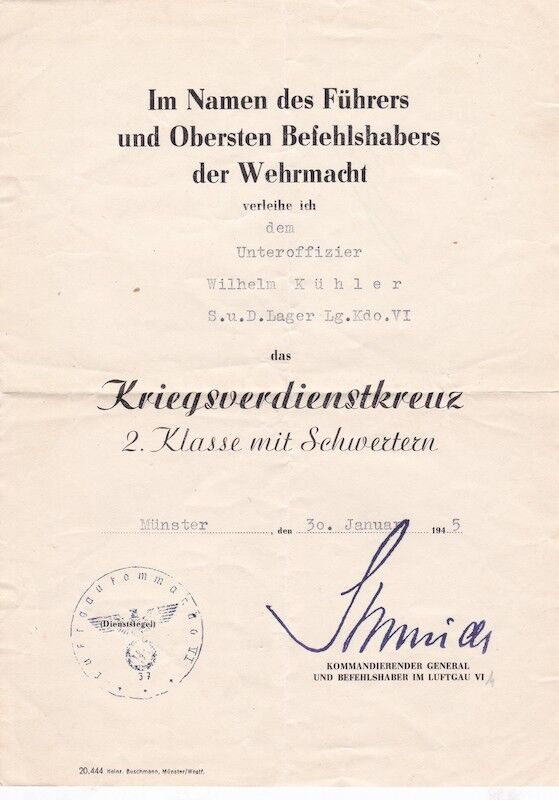 According to his Wehrpass he was in Africa protecting the Ground troops with his flak unit. He made it back and can be seen in the many photos with his wife wearing the Africa Korps Cuftitle. Included is his War Merit Cross Cert.