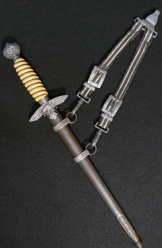 WWII German Luftwaffe Officers Dagger – Alcoso – M1937 2nd Model – Fliegerdolch – With Hanger – VGC Blade – Original