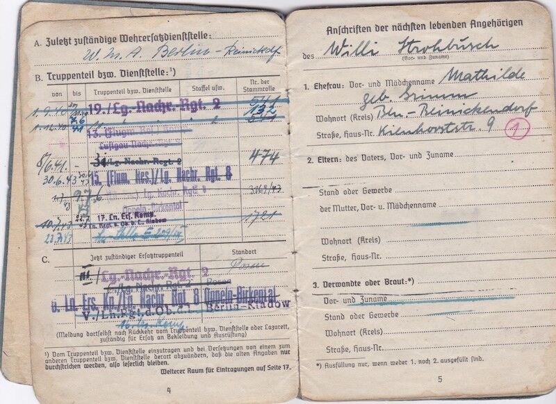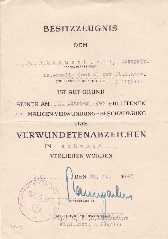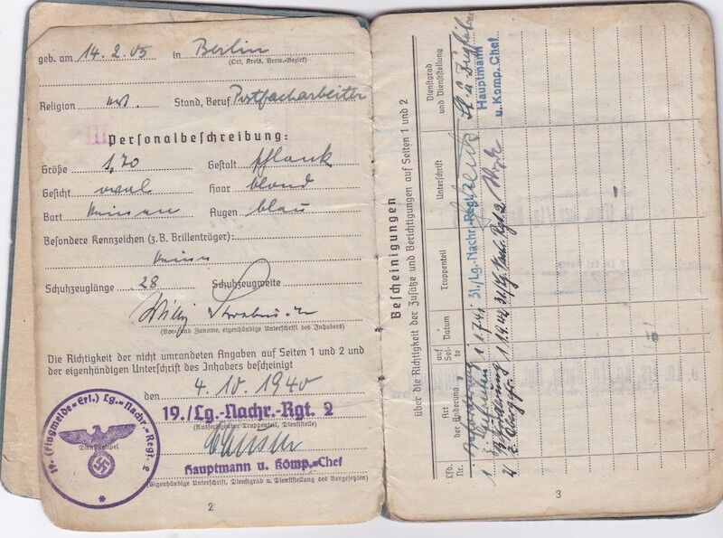 WWII German Luftwaffe Soldbuch Grouping – Obergefr Willi Strohbusch – Berliner -1 x Bandenkampftage Wounded Fighting Greek Partisans – Oberkommando der Luftwaffe Berlin-Kladow – Berlin-Kladow 1945 !