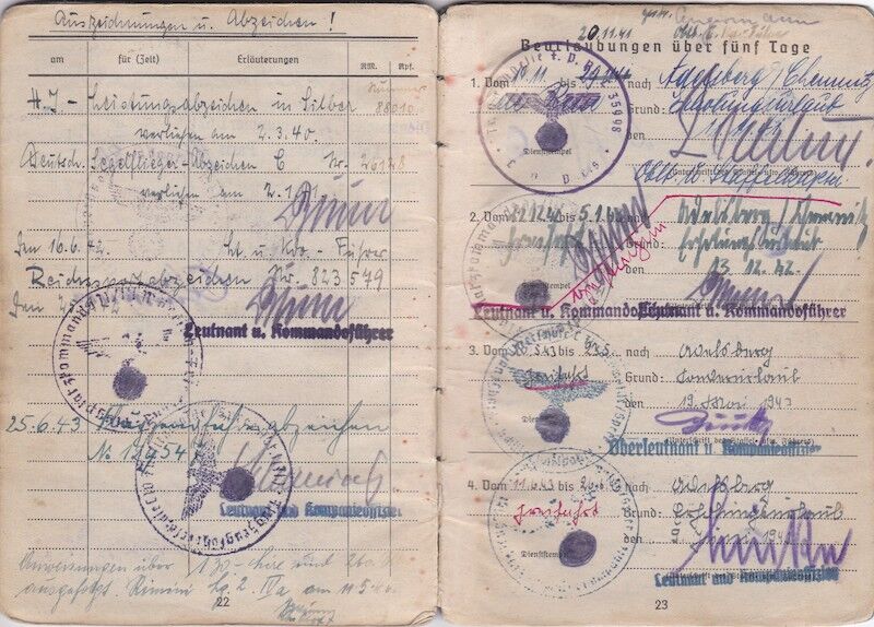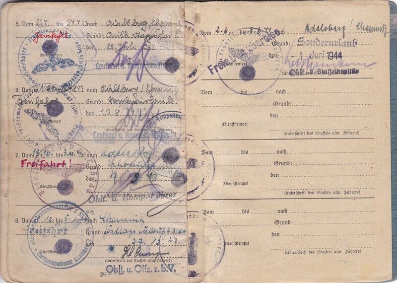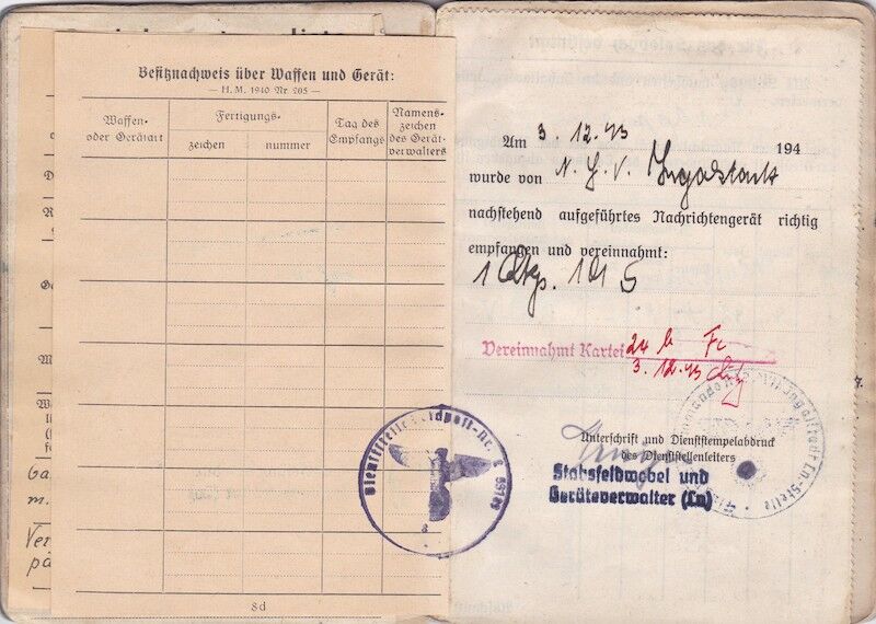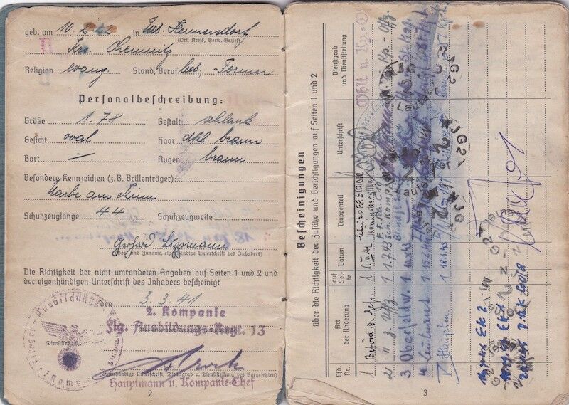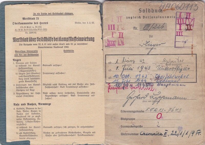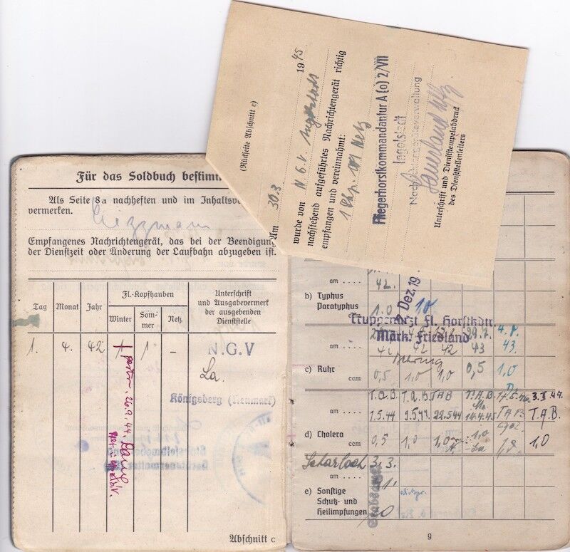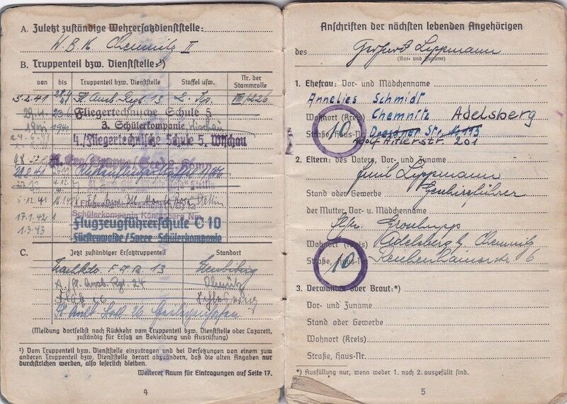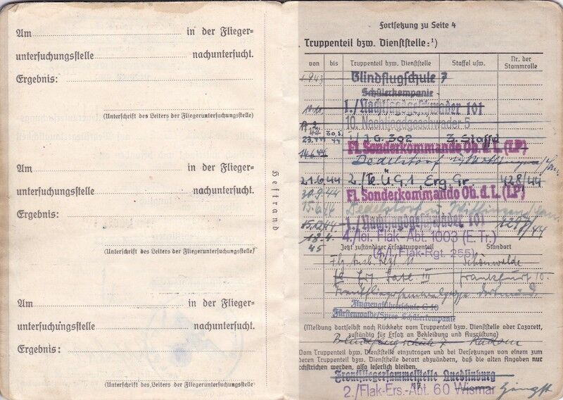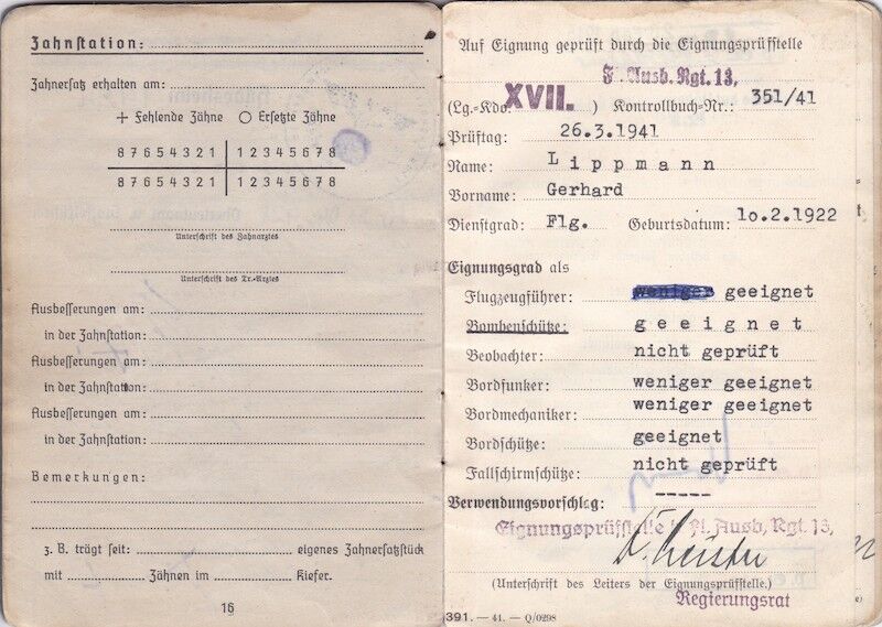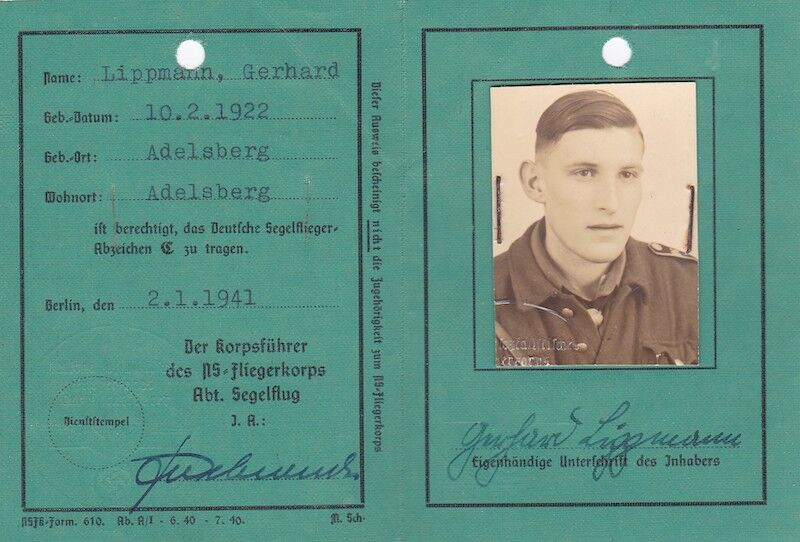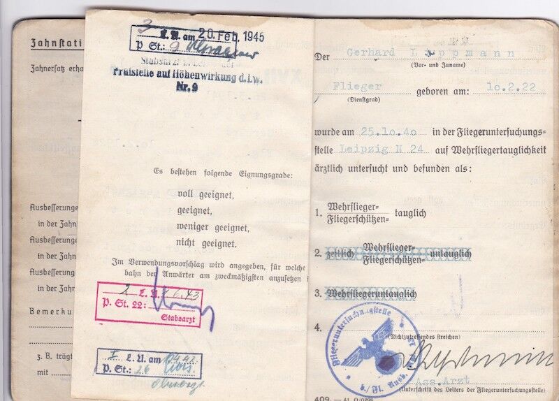 WWII German Luftwaffe Soldbuch ID Grouping – Pilot NCO Gerhard Lippmann – Nachtjageschwarder 101 – FL Sonderkommando ObL – Pilot Badge