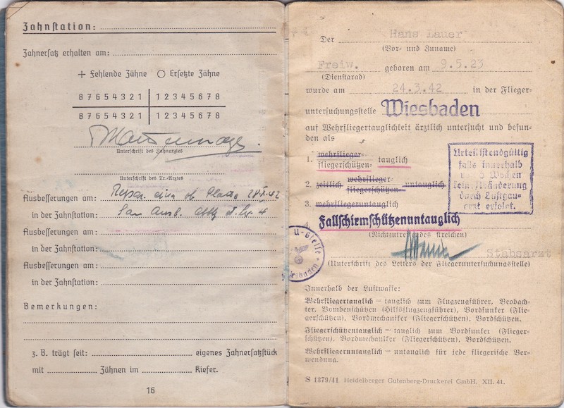 Lauer served with various technical units until early 1943, he was then assigned to a ground combat unit of the Luftwaffe which was put under the Wehrmacht control!