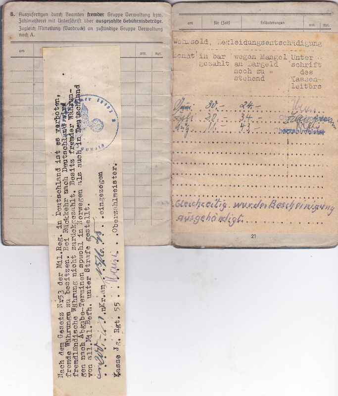 WWII German Luftwaffe Soldbuch ID – Obergefr Johann Lauer – Jäger Regiment 28 (L) – 14. Feld-Division (L) – 20. Gebirgs-Armee – Wehrmachtsbefehlsstelle Norwegen