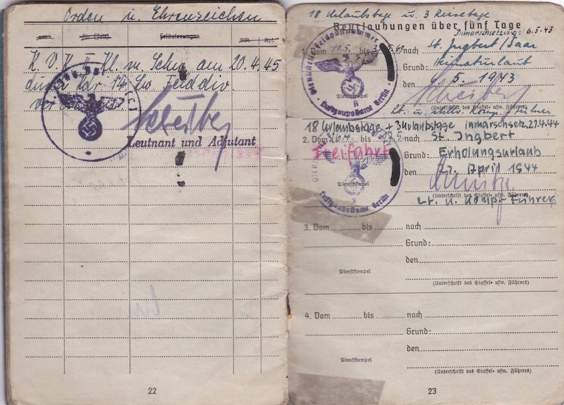 He was also awarded a War Merit Cross Second Class with swords in April 1945 with the 14 LW Feld Division.