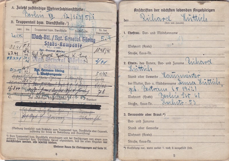Hüttich from Berlin-Charlottenburg, served the whole war within Regiments of the Hermann Göring, including the Wach Batl!