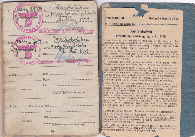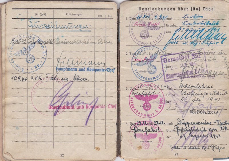 Medals: 1942 Eastern Front Medal, 9.1944 War Merit Cross Second Class with Swords