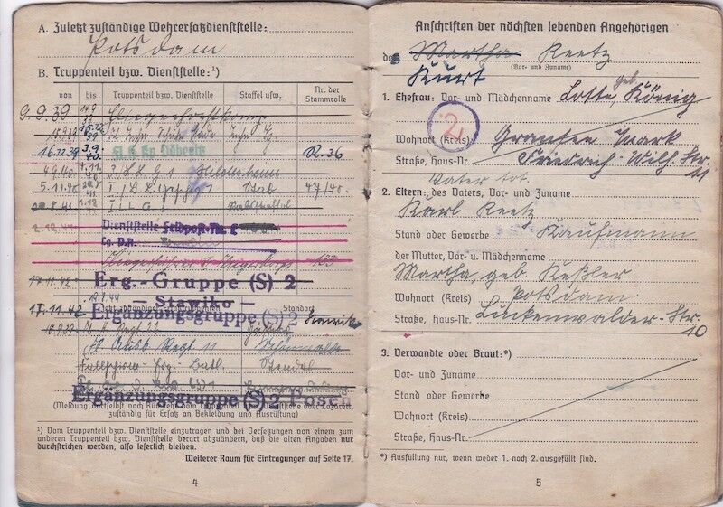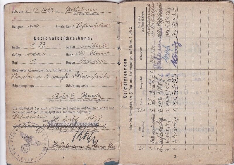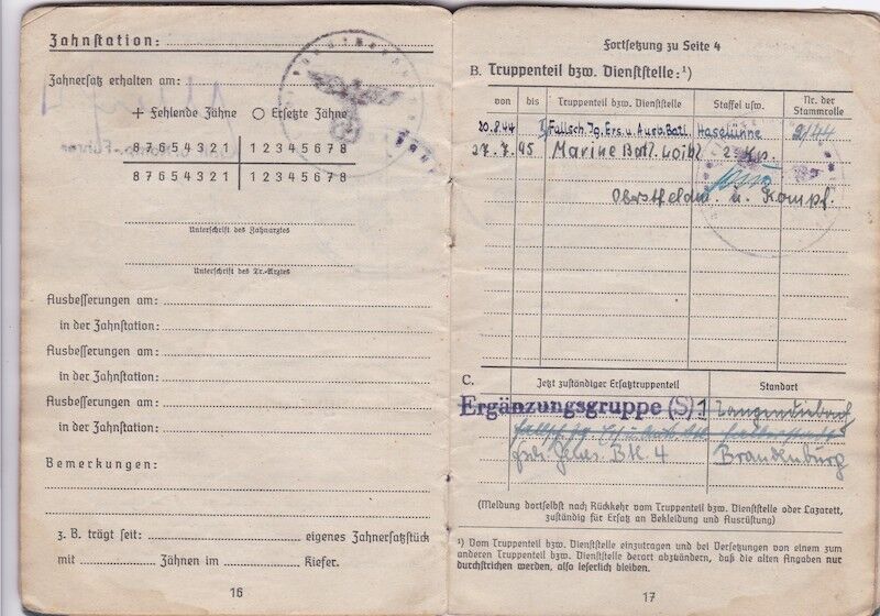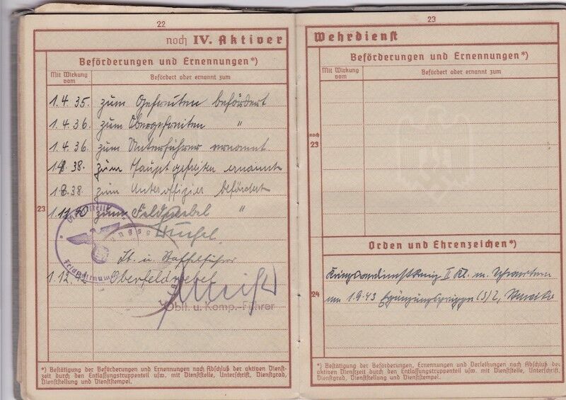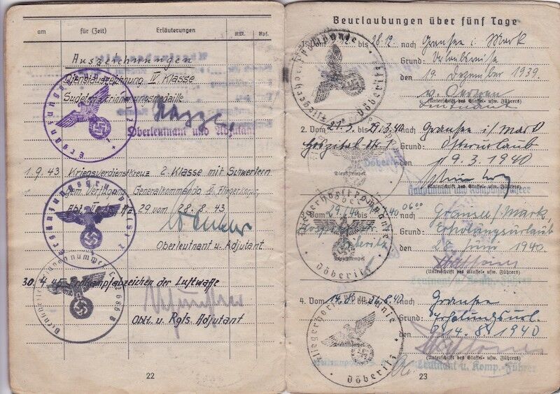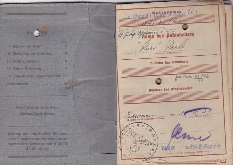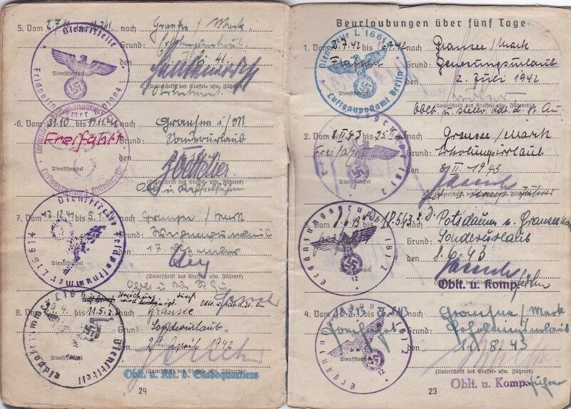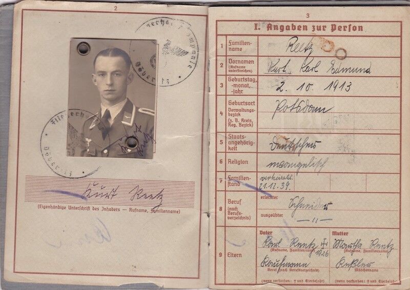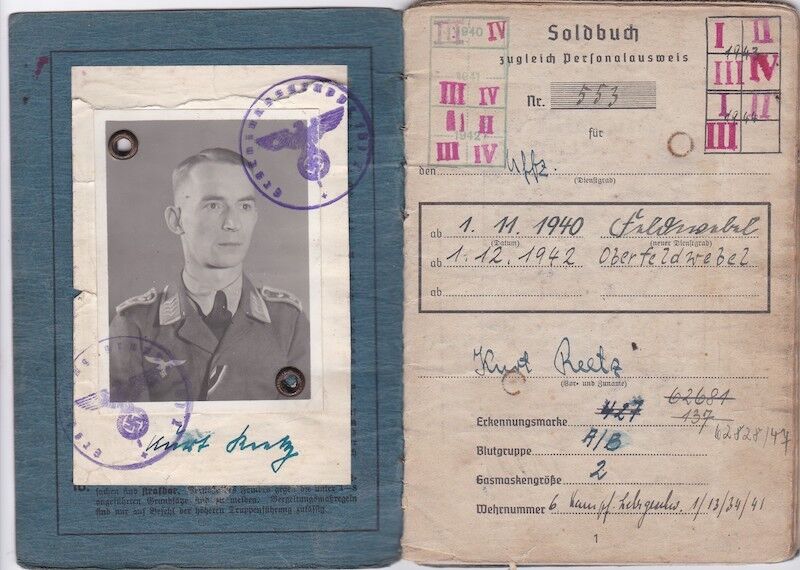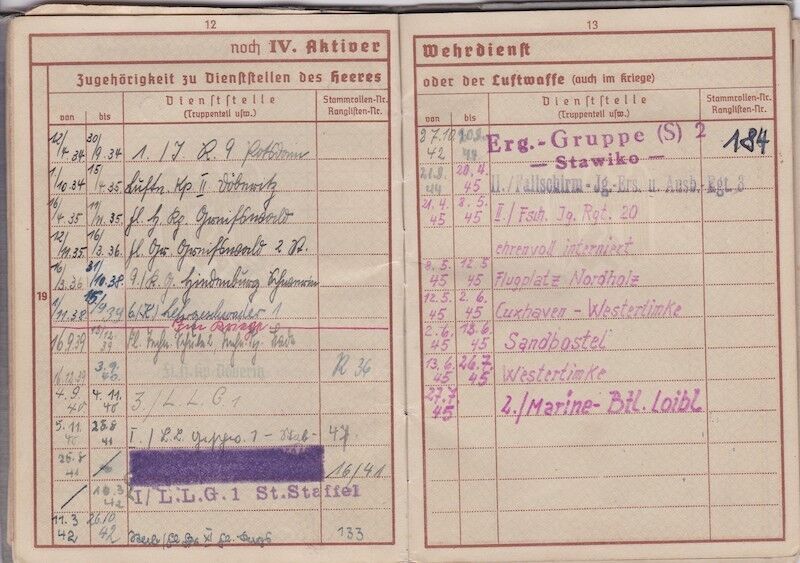 WWII German Luftwaffe Soldbuch & Wehrpass – Oberfeldwebel Kurt Reetz – Fallschrimjäger Regiment 20 – Fighting the British – LW Ground Assault 30.4.1945 !