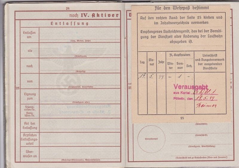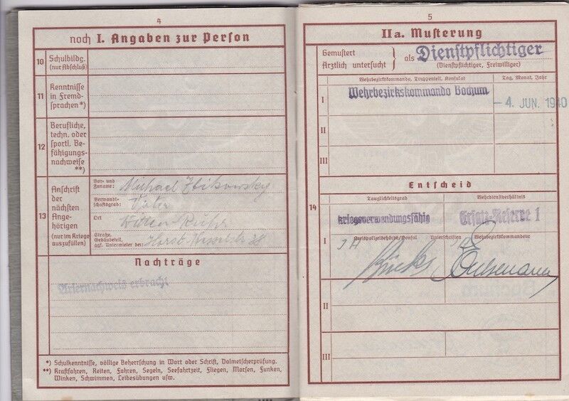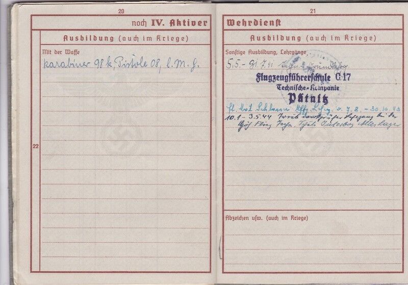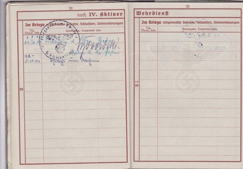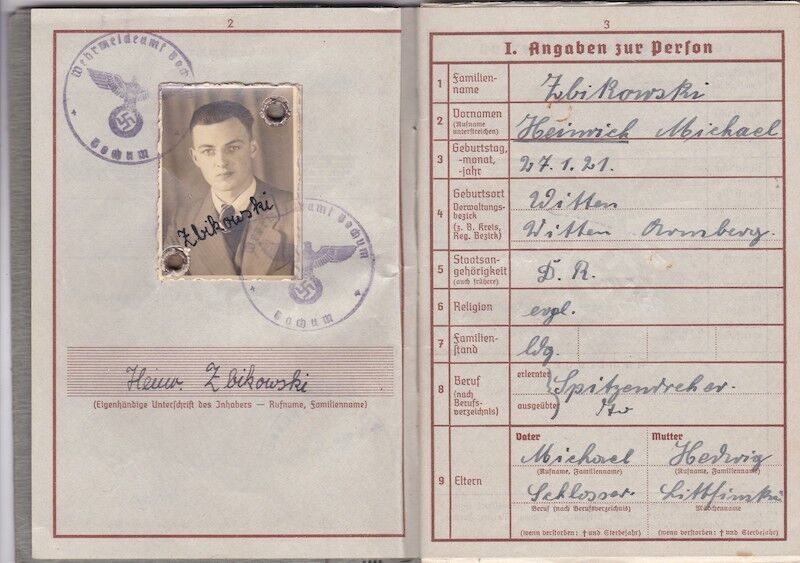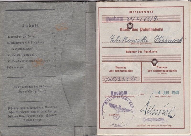 WWII German Luftwaffe Wehrpass – Obgefr Zbikowski – 246th Volksgrenadier Division – Went Missing in Battle of Aachen 1944