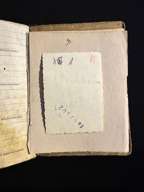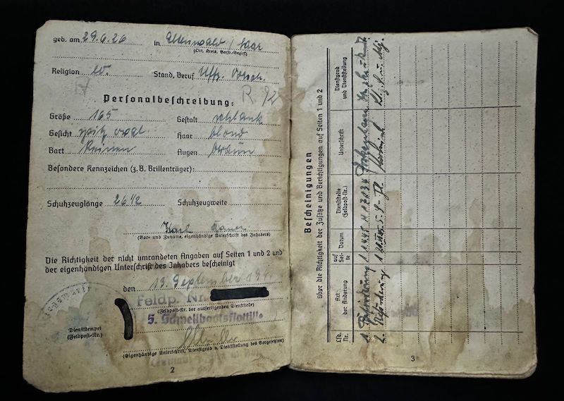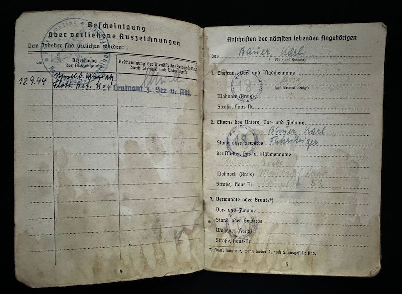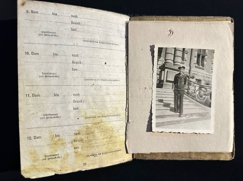In the rear pocket of the Soldbuch is a picture of Bauer wearing his Fast Attack Badge.
