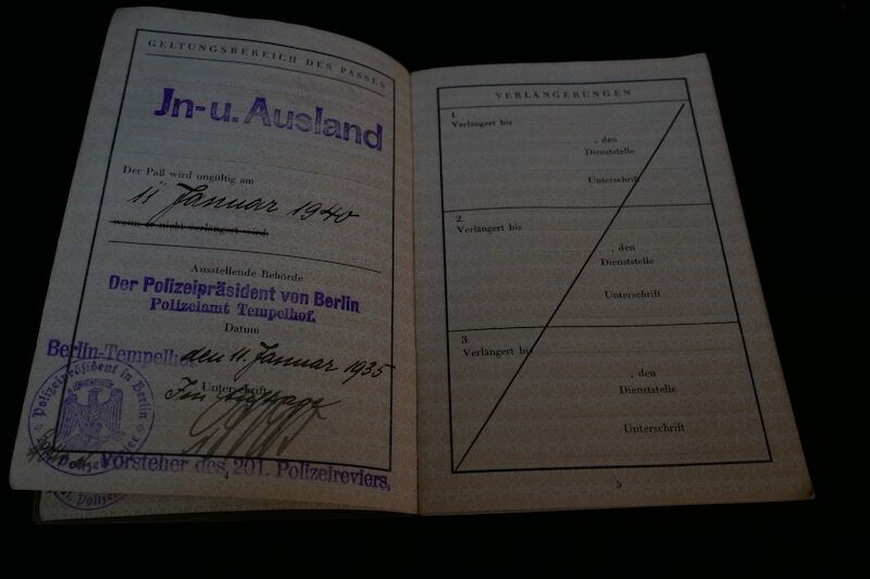 WWII German Passport ID – Reispass – Berlin Tempelhof 1935 – Film Industry Worker
