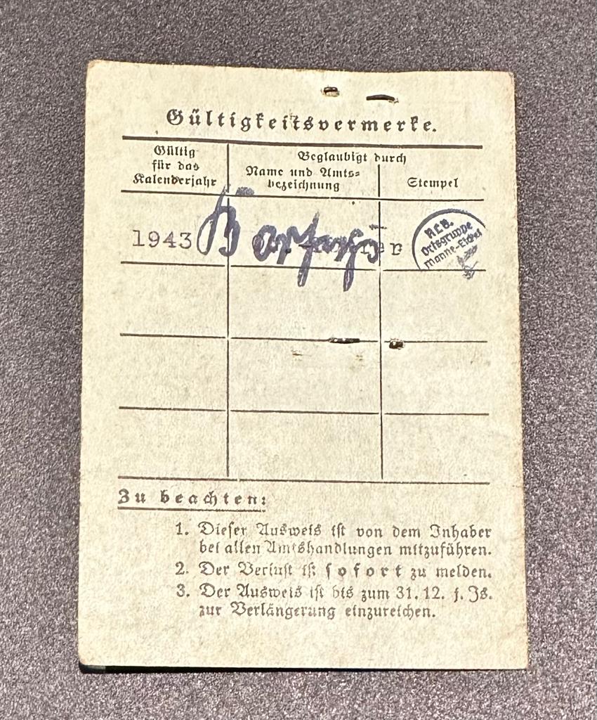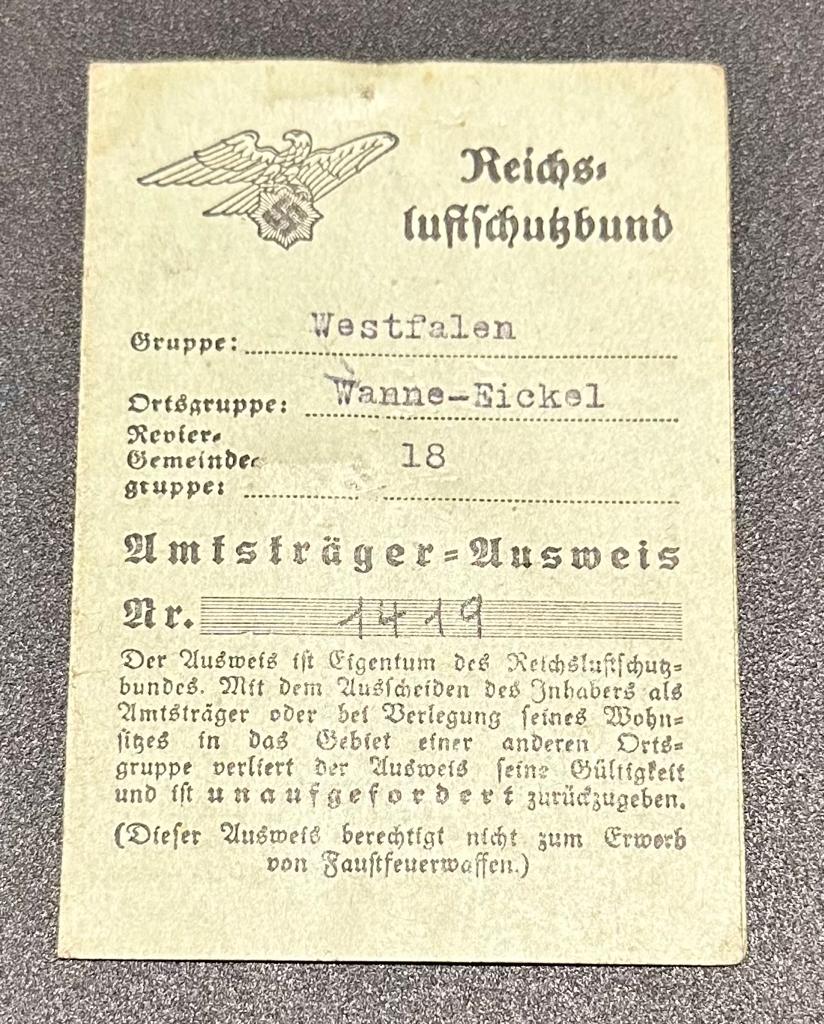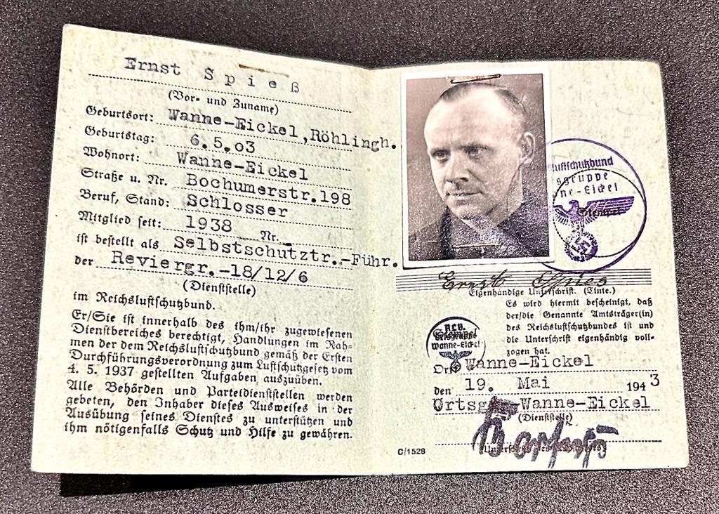 WWII German Reichsluftschutzbund – Selbstschutztruppen Führer Spiess – Wanne-Eickel – Rare ID