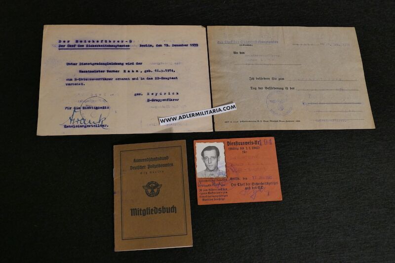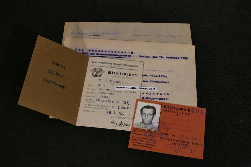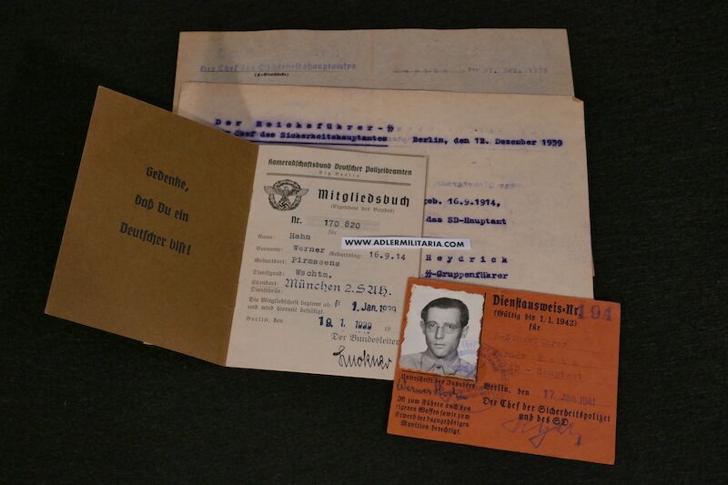 WWII German SD-Hauptamt Service ID – SS Scharführer Werner Hahn – Heydrichs Staff – SD Berlin 1942 – Ultra Rare Grouping (On Hold)