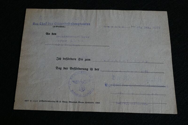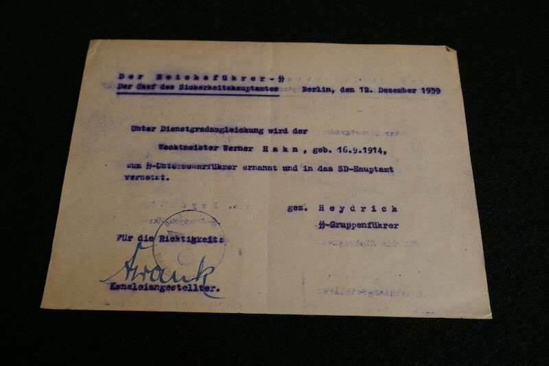 SS Scharführer Werner Hahn, was shortly before the war a member of the German Police. It seems according to the Heydrich office promotion documents to Hahn that he was already in Heydrichs staff from the beginning of the war.