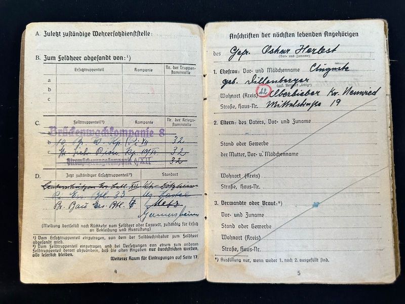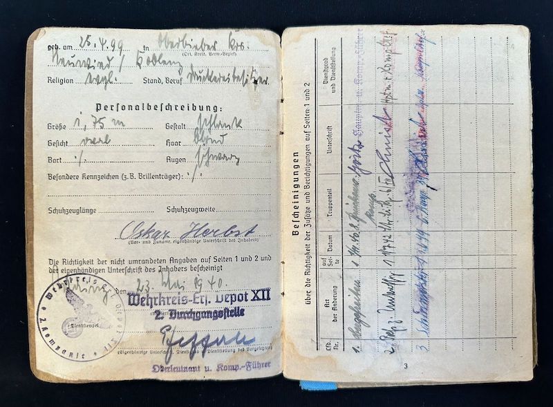 Soldbuch issued to Oskar Herbst in 1940.