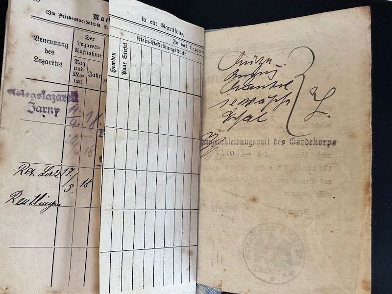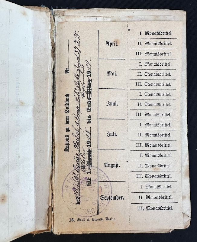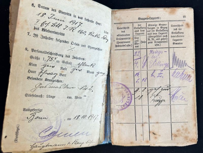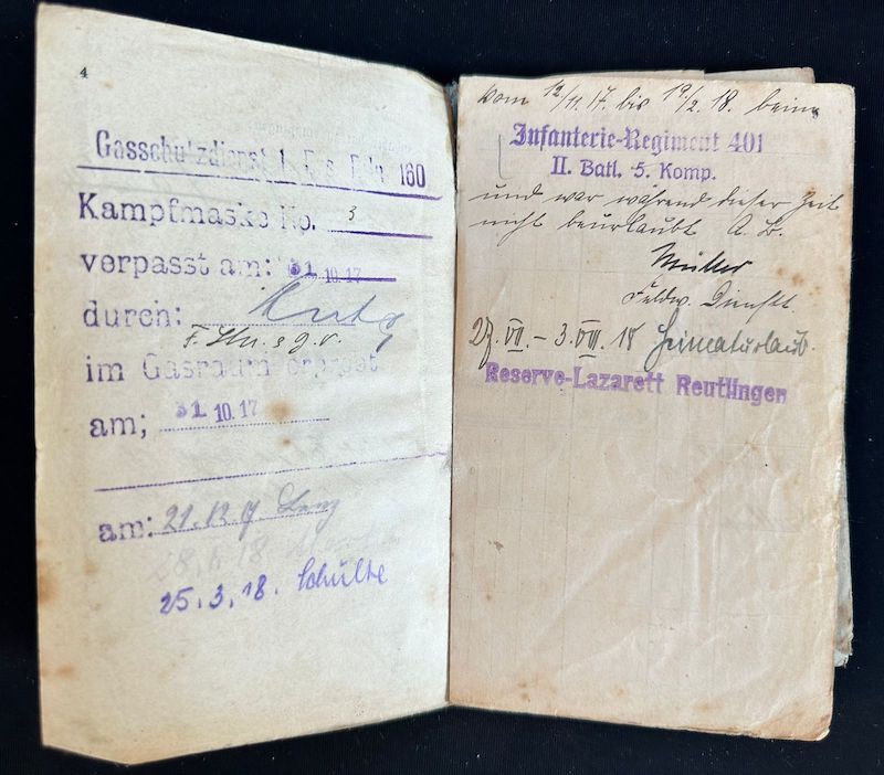 Nice with this grouping is that his WW1 Soldbuch is also included, joining the fight in 1917 – serving with Infanterie Regiment 401 – 201ID